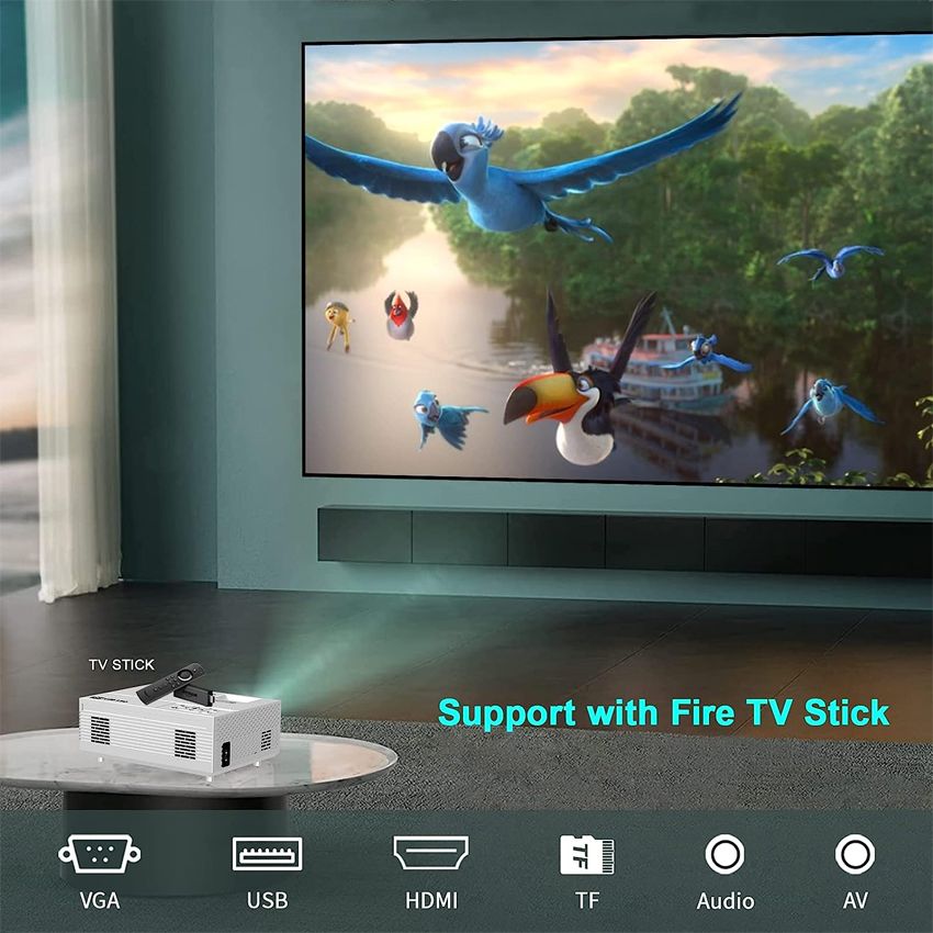 Mini Projector Portable: The superiority of the outdoor projector is that its clarity is better than that of a regular projector (compared to similar projectors). In addition, this video projector is designed to be small (23.9*15.5*8.1 cm). The unique design makes it easier to take anywhere.