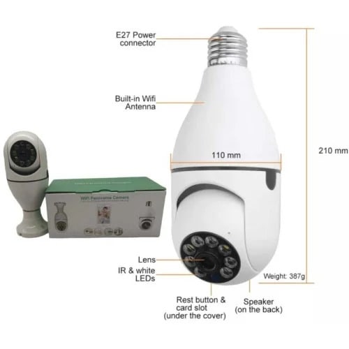 360 & deg; Vision Smart Home Camera. Remote View Anytime Anywhere when you away from home. 360 & deg; Degrees Panoramic View360 & deg; degree panoramic monitoring without dead angle wireless plug and play, widely used in room, office, store.Easy InstallationSay goodbye to complex installation, super easy install just like replace a bulb3D Vision experience. Make everything so real as home. Support different view modes.Higher Resolution: Present better and clearer image. High-performance processing chipset960P HD images. The built-in IR-CUT module guarantees no image distortion, improves the color purity and captures clear images, imaging with HD Lights enables clear imaging in dim lights and lets you capture every details