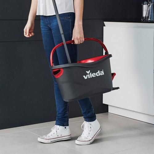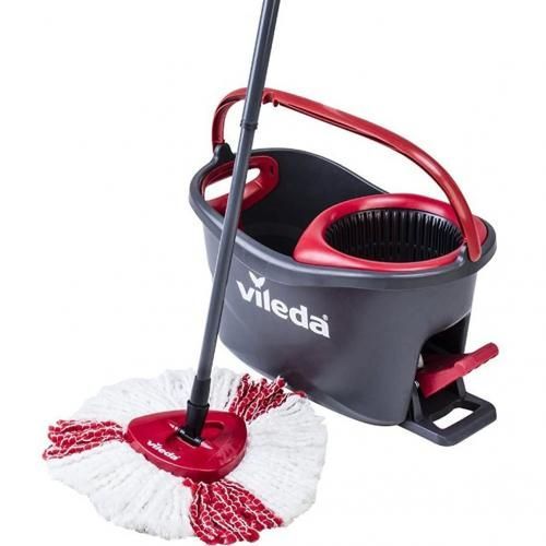 The Vileda Turbo spin mop, with foot pedal operated wringer, helps you to thoroughly clean your floors with minimal effort. Featuring a 2in1 microfibre mop head with unique red strands for extra particle pick up and a deep down clean.