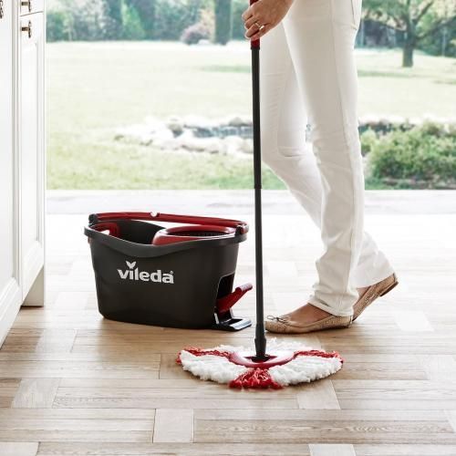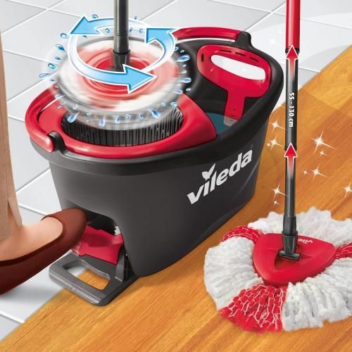 Vileda Turbo Spin MopspinCleans Floors FasterFoot activated wringing mechanism with splash protection barrier makes cleaning floors faster than ever. Perfect for use on tiles, wood and lamination.