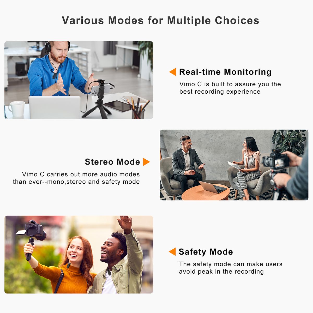 Real-Time Monitoring: This microphone supports real-time monitoring and allows for easy switching between mono, stereo, and safety track modes. This gives you the flexibility to choose the best sound setting for your specific recording situation.