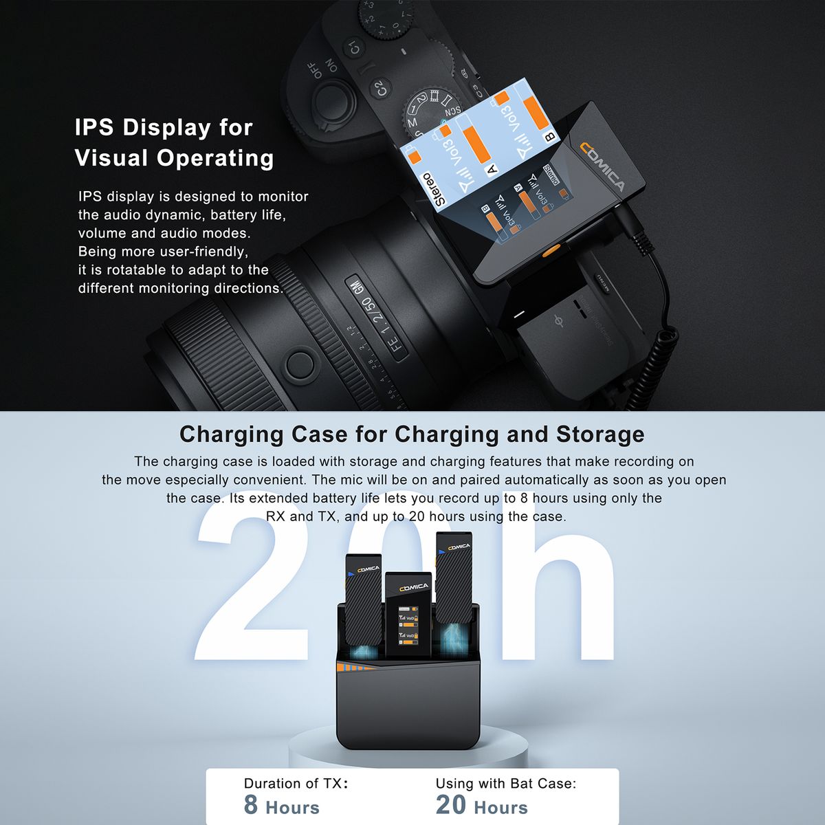 COMICA Vimo C3 Wireless Microphone System with 1 Receiver & 2 Microphones 200M Transmission Range 4 Level Adjustable Speed Built-in Battery with Case Replacement for Android Phones Computer Laptop Camera for Live Streaming Interview Vlog