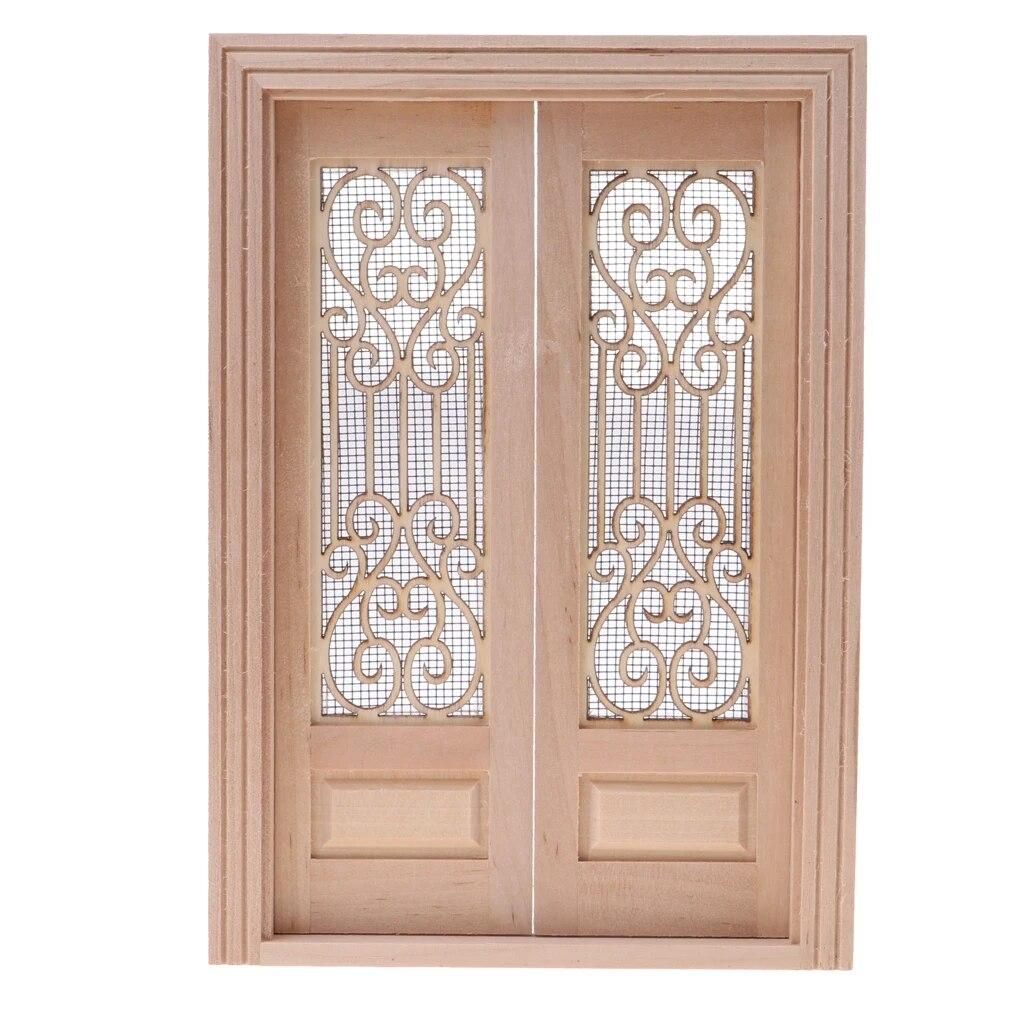 Buy Vintage 1/12 Wooden Hollow Screen Double Door Dollhouse Miniature DIY Decor in Nigeria