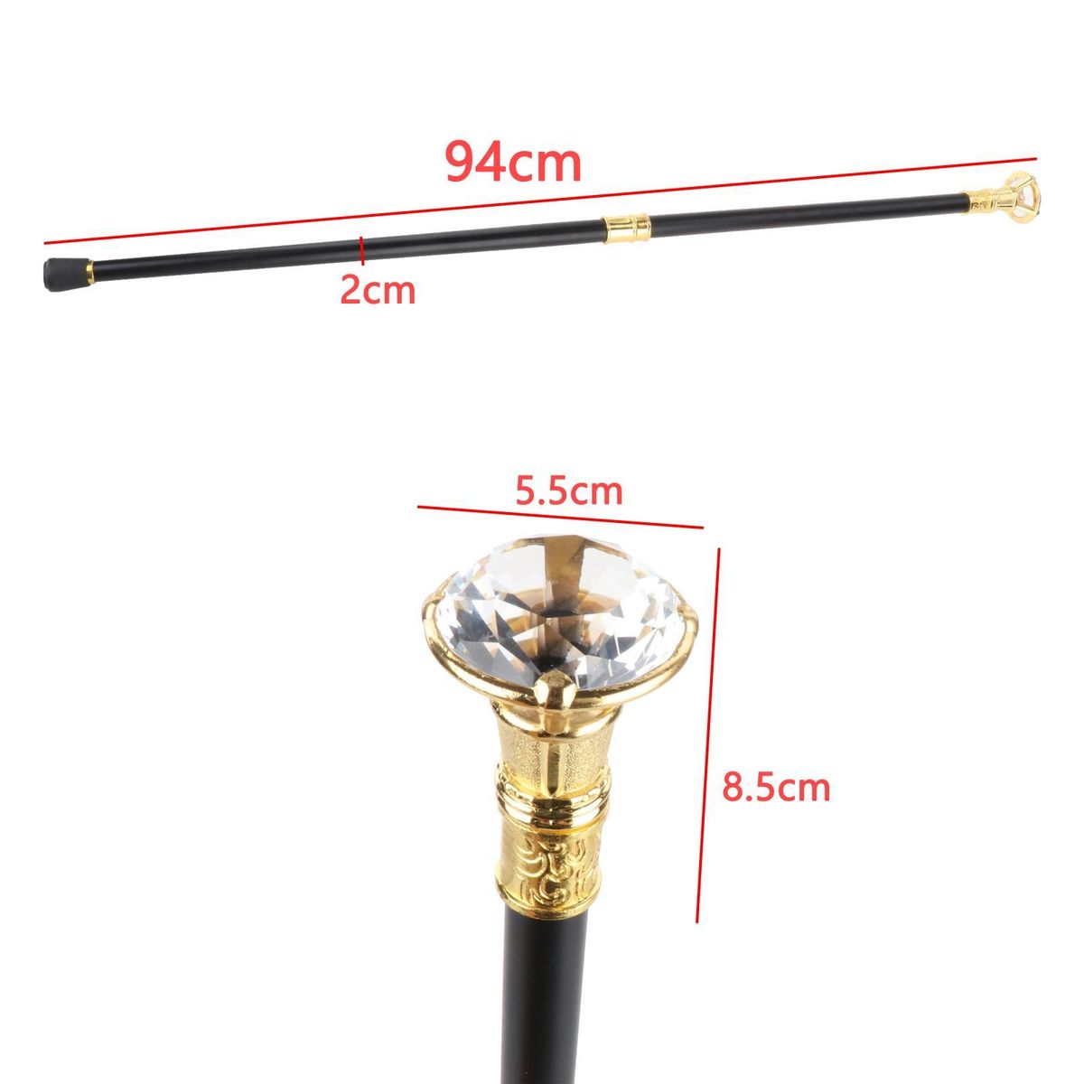 Stately walking rod is crowned with a highly detailed diamond.Makes a striking accent to formal attire.Detachable: Top and bottom pieces screw and unscrew for easily travel, assembly.Size: 94cm/37.01inch in total length.Material: Black aluminum alloy shaft, pc material tip, sturdy, non slip.