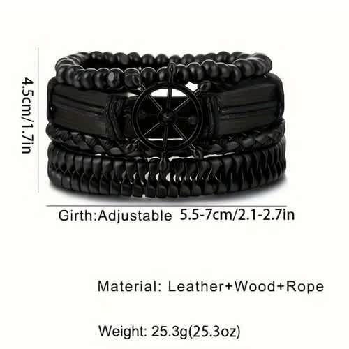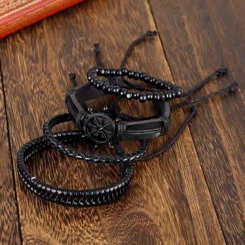 Buy Vintage Black Boat Rudder Multi-layer Faux Leather Bracelets-set Of 4pcs in Nigeria