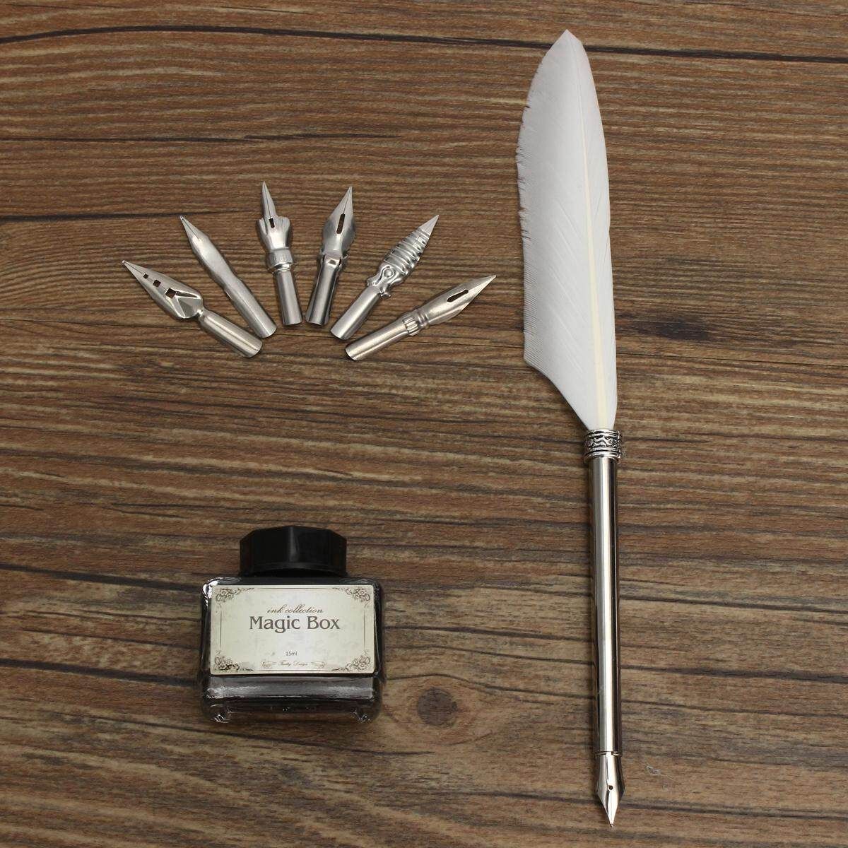 1xFeather Pen 1xInk Bottle (ink not included) 1xGift Box6xPen Nib