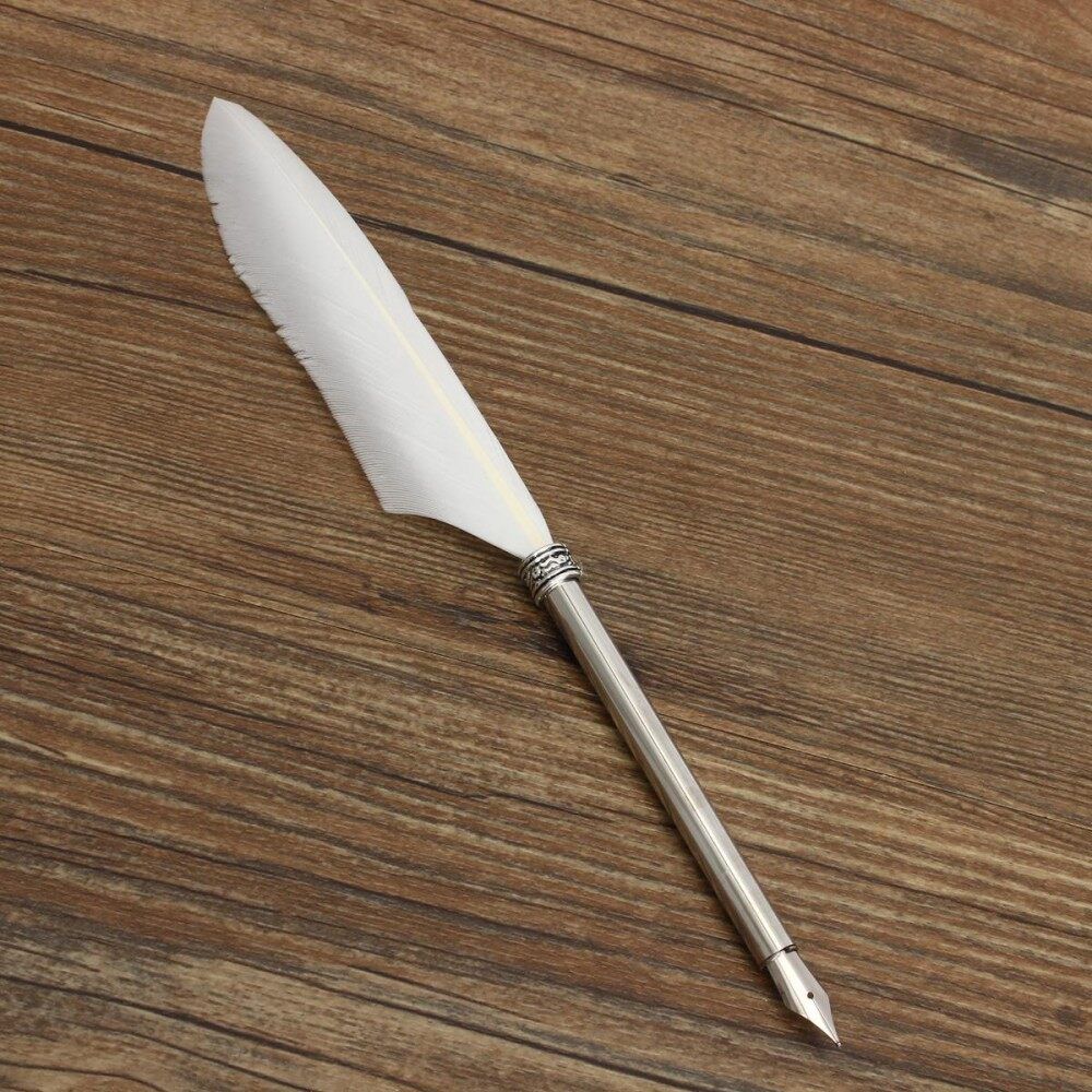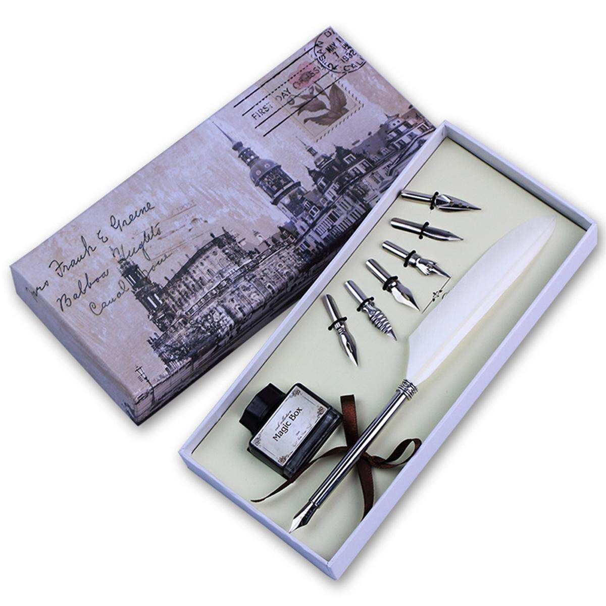 Retro Goose Feather Quill Dip Pen Metal Nip with Black Ink + 6 Nibs Set Gift