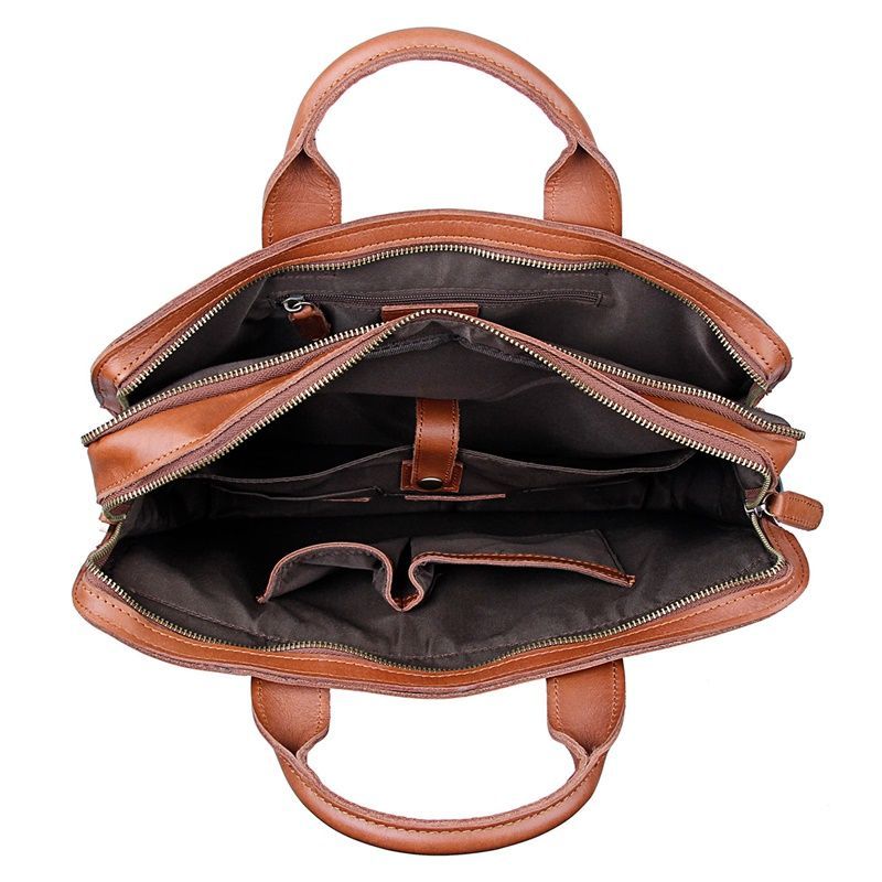 1X Vintage Brown Coffee Thick Genuine Leather 14'' Laptop Office Men Briefcase Portfolio Messenger Bag Highend New M6020