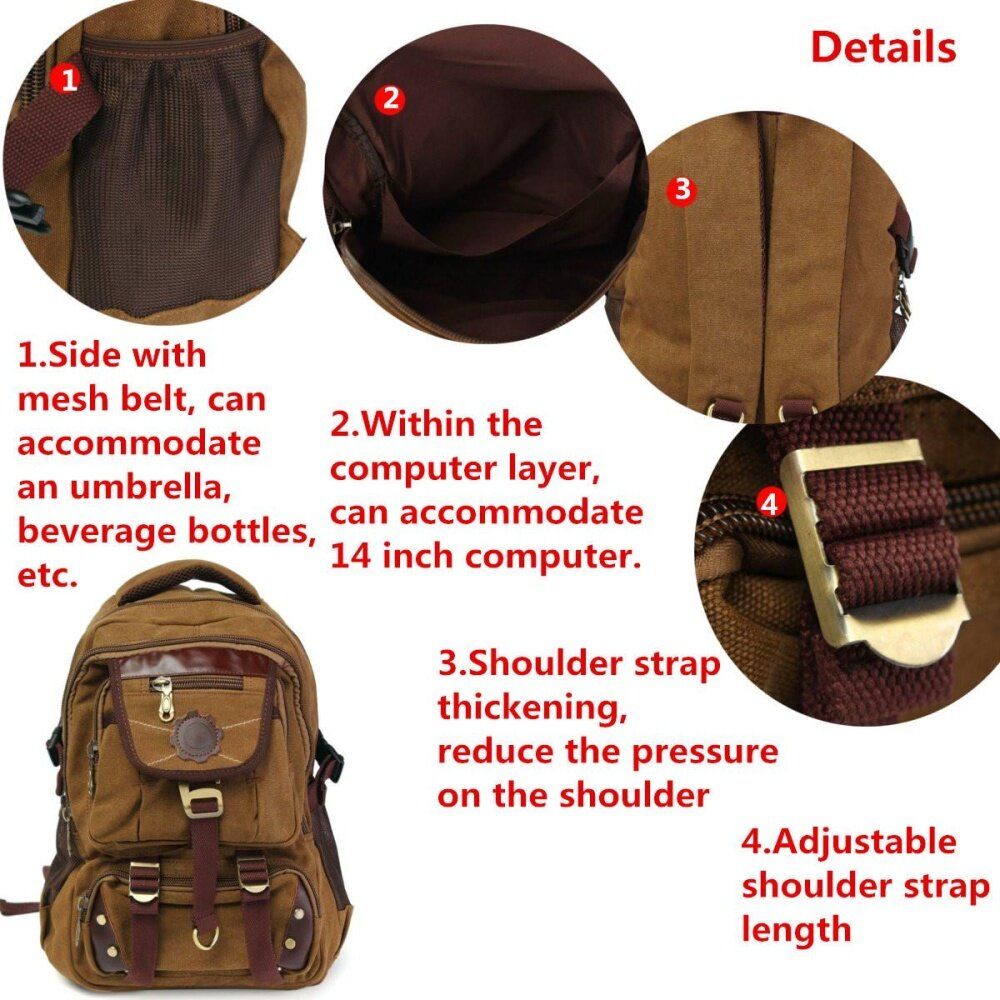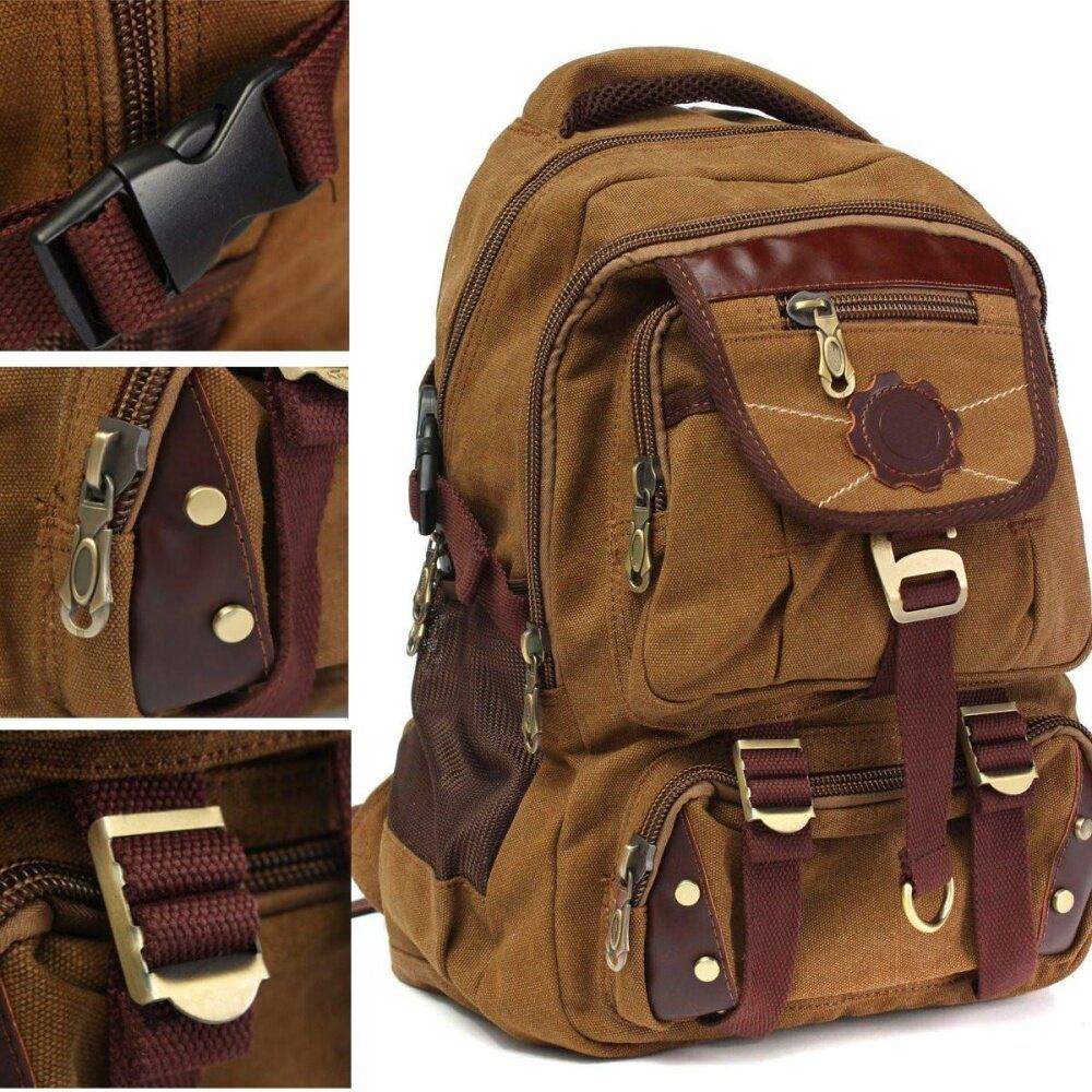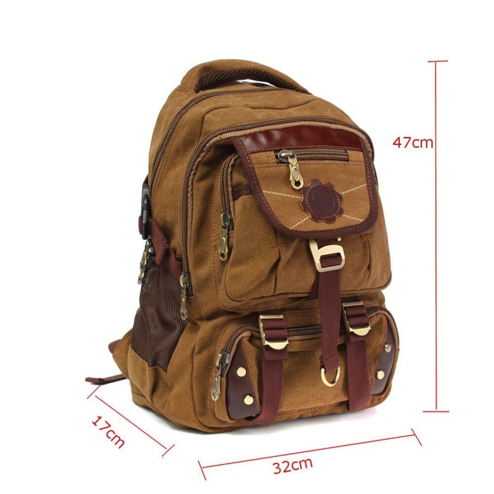 - 1X Vintage Canvas Backpack Rucksack Satchel Travel Hiking Laptop Bag for Men Women