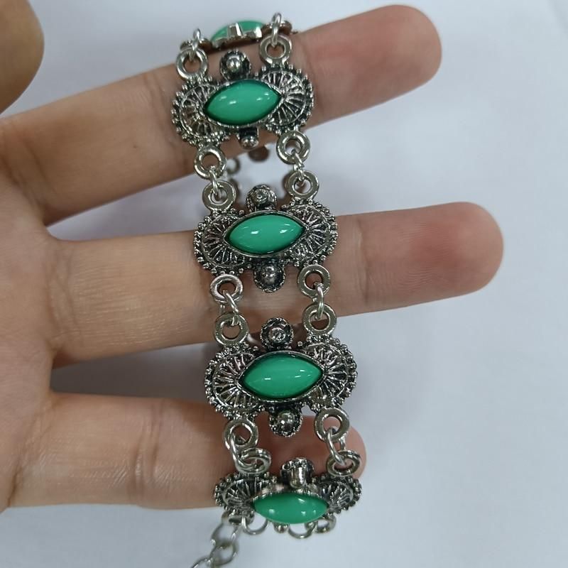 Buy Vintage Ethnic Bohemian Bangles For Women Wife Beach Engraving Pattern Oval Green Stone Adjustable Bracelets Wrist Band Jewelry in Nigeria