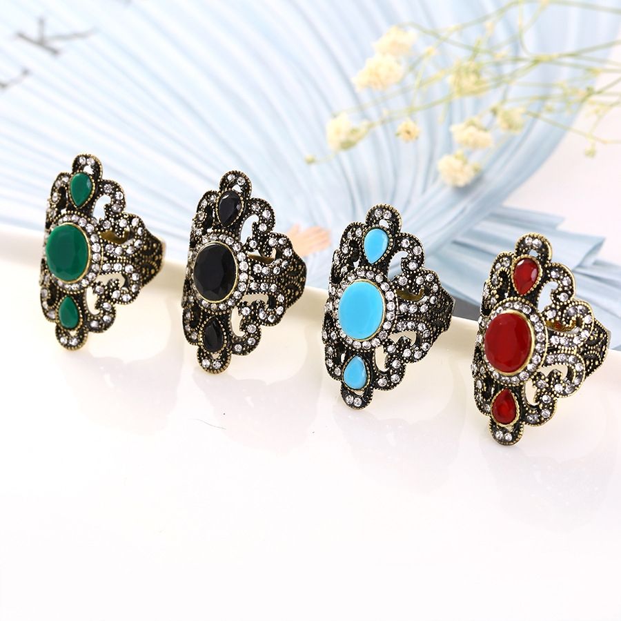 Buy Vintage Ethnic Exquisite Carved Inlaid Acrylic Resin Hollow Ring,Size:7(Blue) in Nigeria