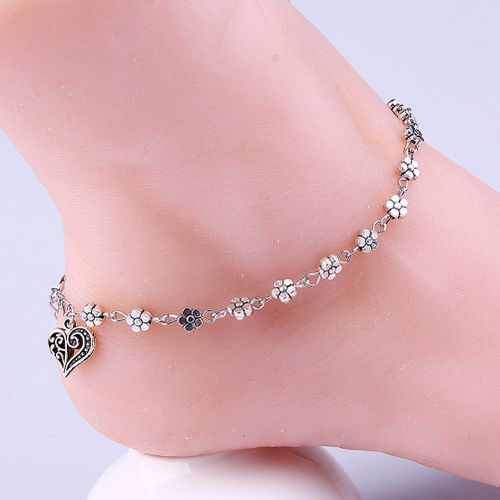 Features: Flower & Heart Charm, Foot Jewelry, Gift