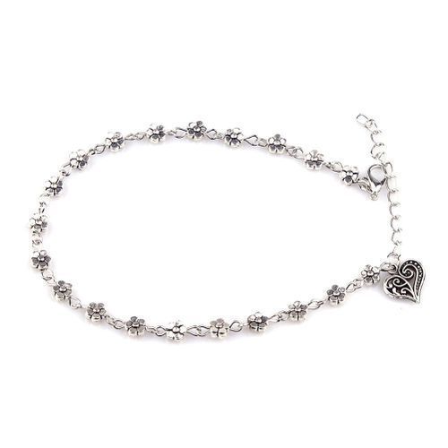 Women ankle bracelet with flower and hollow heart charm, adds a vintage touch.