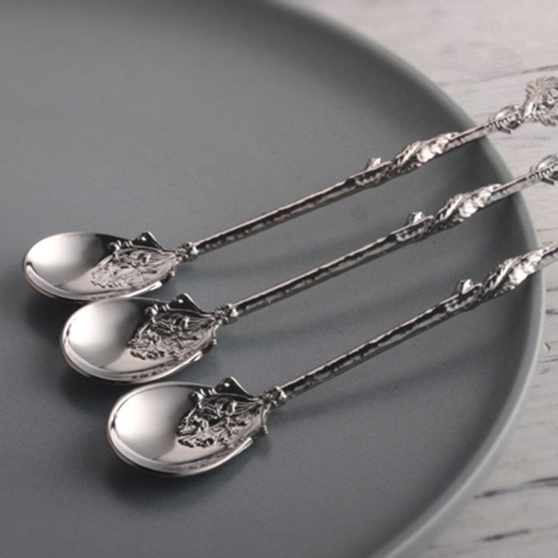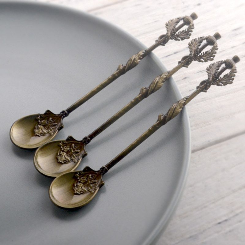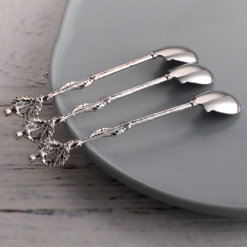 Vintage style spoon with thistle flower leaf, looks elegant and beautiful.