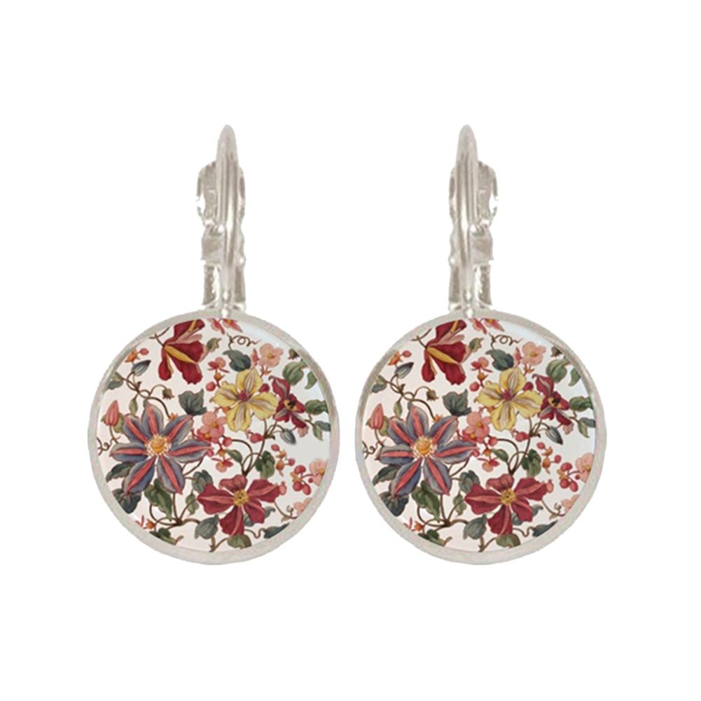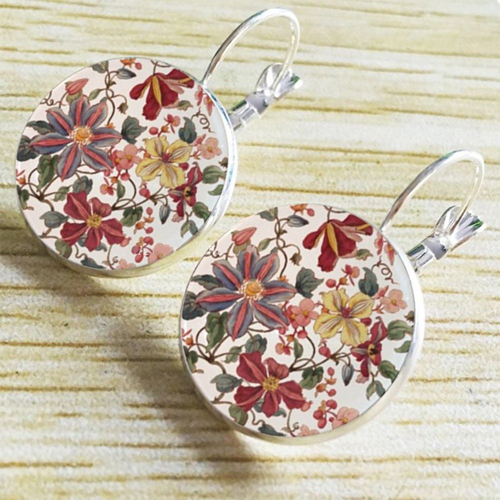 Features: Round Pendant, Flower Printed, Leverback Earrings, Women Jewelry