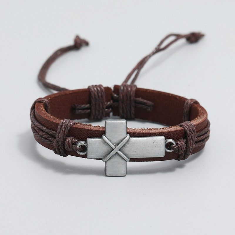 Type: Vintage Handwoven Leather Cross BraceletGender: Men, WomenTopics: BeautyStyle: fashionMaterial: PU+alloy+hemp rope+cowhide+wooden beadsWeight: 26 gramsOccasion: Club, Party, Christmas, Gift, Dating, etc.Features: simple cross pendant, christmas gift, lustrous necklace, decorated with cross pendant, simple but stylish.Perfectly paired with your sweaters, t-shirts, cardigans for a cool and glamorous look.Sophisticated and thoughtful gift for a friend or family member of your faith for a birthday, anniversary, or everyday surprise.Length: about 6CM in diameter, 17-18CM in length of the braided bracelet and about 8-9CM in length of the drawstring, which can be adjusted by pulling one side.Description: As shown in the picture, all products are taken under natural light, and what you see are taken in kind, but due to various reasons such as different monitors, the color on the picture may have a slight color difference from the real thing, Please refer to the actual product.How to maintain the necklace1. When wearing, avoid contact with chemical alkaline substances, once contact may cause oxidation. 2. Avoid violent collision and friction on stainless steel surfaces, especially those with mirror light. Use a softer cloth that is not easy to fall off to scrub. For sanded steel and brushed surfaces, wipe along the lines, otherwise it is easy to scratch the surface. 4. It is not advisable to wear it while sleeping. 5. It is not advisable to wear it when taking a bath