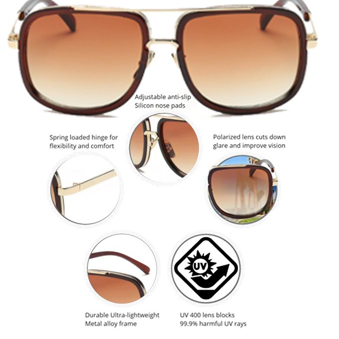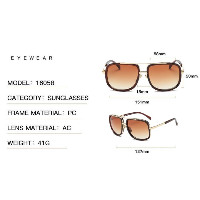 In the sun, people usually have to adjust the pupil size to adjust the luminous flux. When the light intensity exceeds the ability of the human eye to adjust, it will cause harm to the human eye. Therefore, outdoor activities, especially in summer, need to use shades to block sunlight to reduce fatigue caused by eye adjustment or damage caused by strong light stimulation. Gender : MEN Frame Material : Alloy Style : Pilot,Driver, travel enthusiast Lenses Optical Attribute : Gradient Lenses Optical Attribute : Anti-Reflective Lenses Optical Attribute : UV400 Lenses Material : resin Lens Width: 47mm Lens Height : 59mm Use : Point for Outside, Shopping ,Party ,Travel,T Show,Outdoor Driving Suitable for Face Shape : Round ,Long , Square , Oval Face Lens Function : 100% UV400 Protection Against Harmful UVA/UVB Rays Glasses structure: frame Intensity: Strong Specification: Adult Lens material: resin Anti-UV grade: UV400 Frame material: plastic + metal Orbital Material: Metal Sunglasses men: outdoor glasses Visible light transmittance: 99%