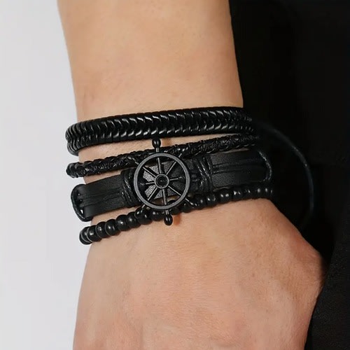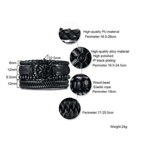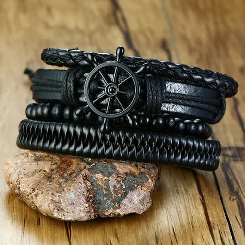 Buy Vintage Multi-layer Leather Bracelet-Brown-set Of 4pcs in Nigeria