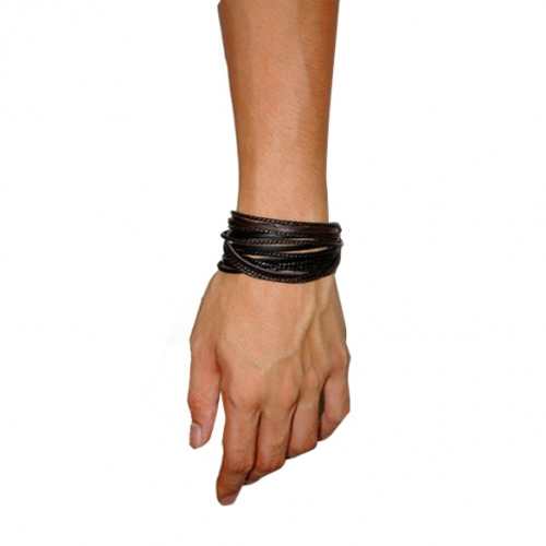Wrap Multilayer Synthetic Leather Bracelet With Braided Rope & ndash; Black
