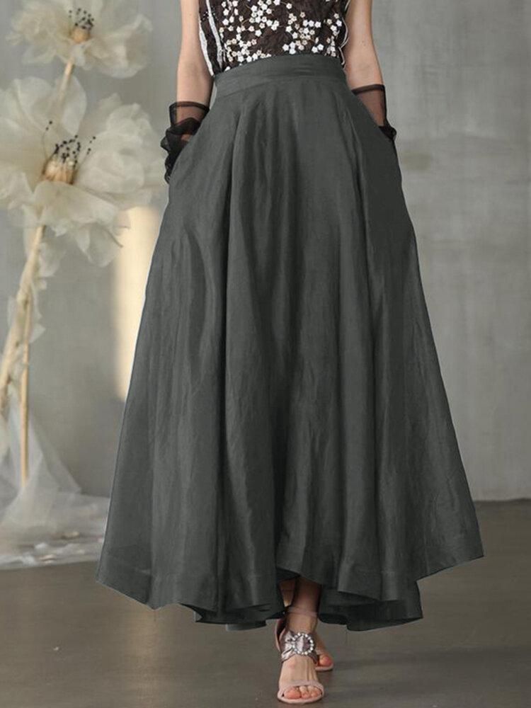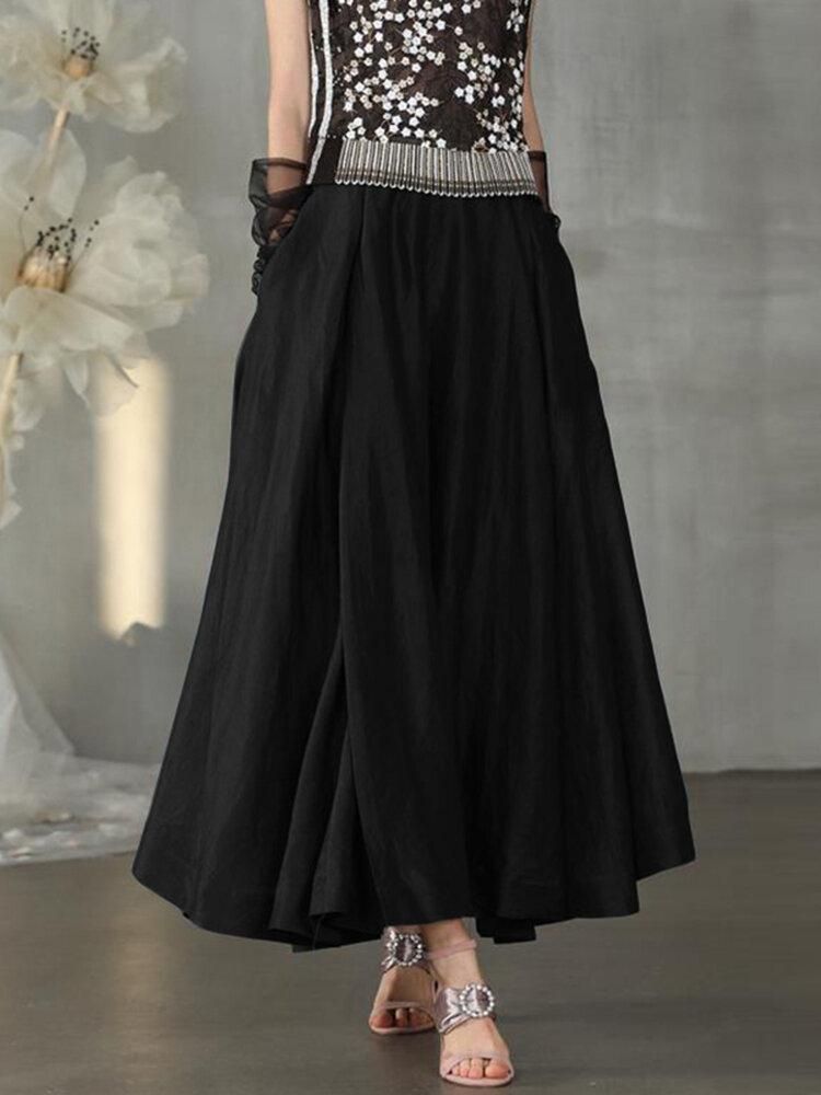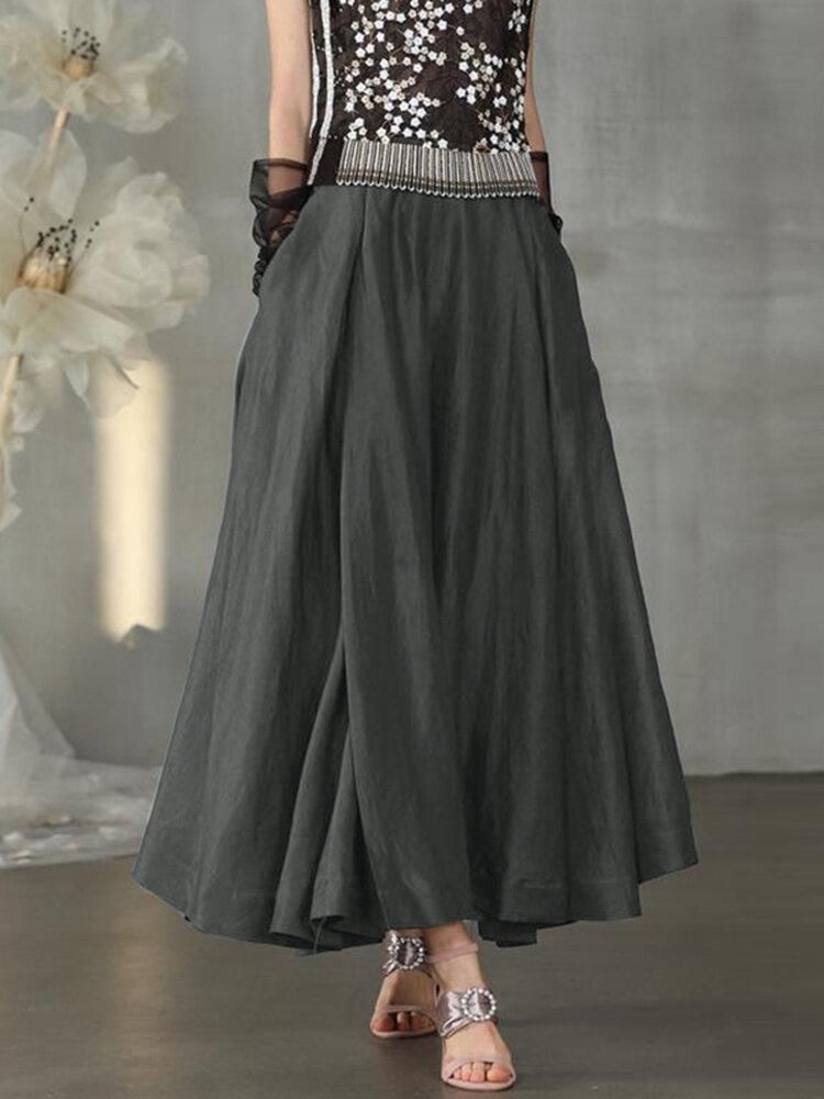 Buy Vintage Solid High Elastic Waist Side Pocket Big Swing Pleated Skirts in Nigeria