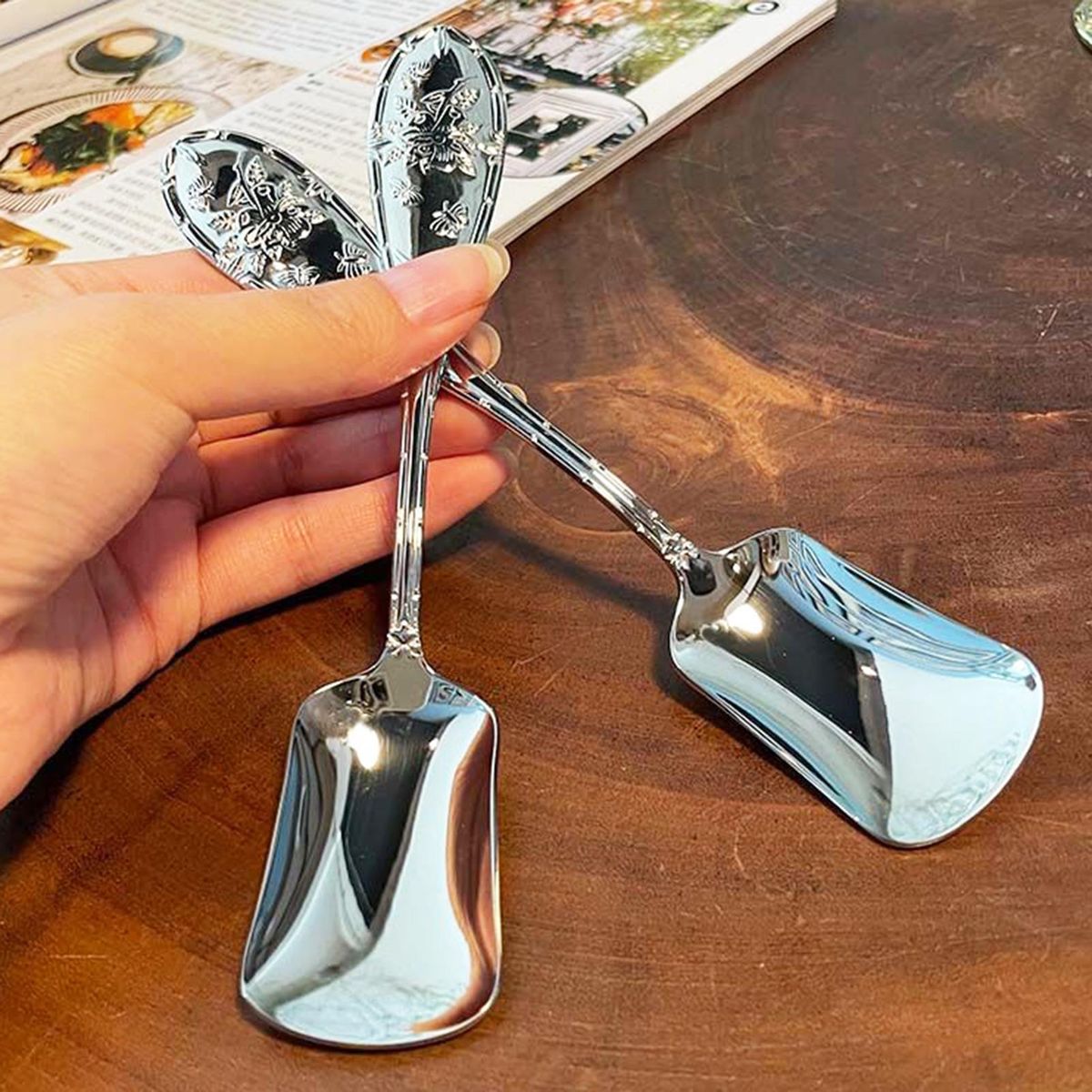 Our ice cream spoons feature a unique mirror-polished finish and a stylish square head design that adds a touch of elegance to any dining experience. they are suitable for various settings such as dining rooms, kitchens, canteens, dessert houses, restaurants, banquets, cafes, and even camping trips. the flat blunt ends make scooping easy and enjoyable while indulging in your favorite ice cream, sorbet, sherbet, yogurt, desserts, cakes or jelly.