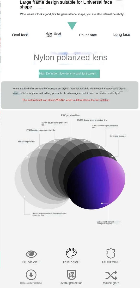 2.Protection: the sunglasses are made of high-quality polyurethane, which can effectively protect your eyes from harmful ultraviolet rays.