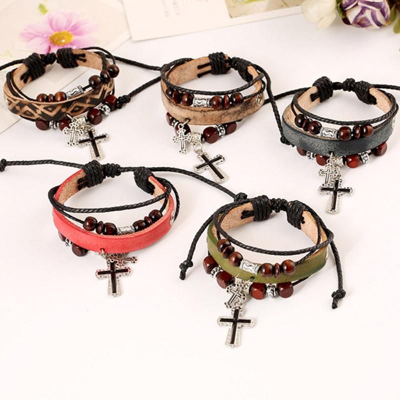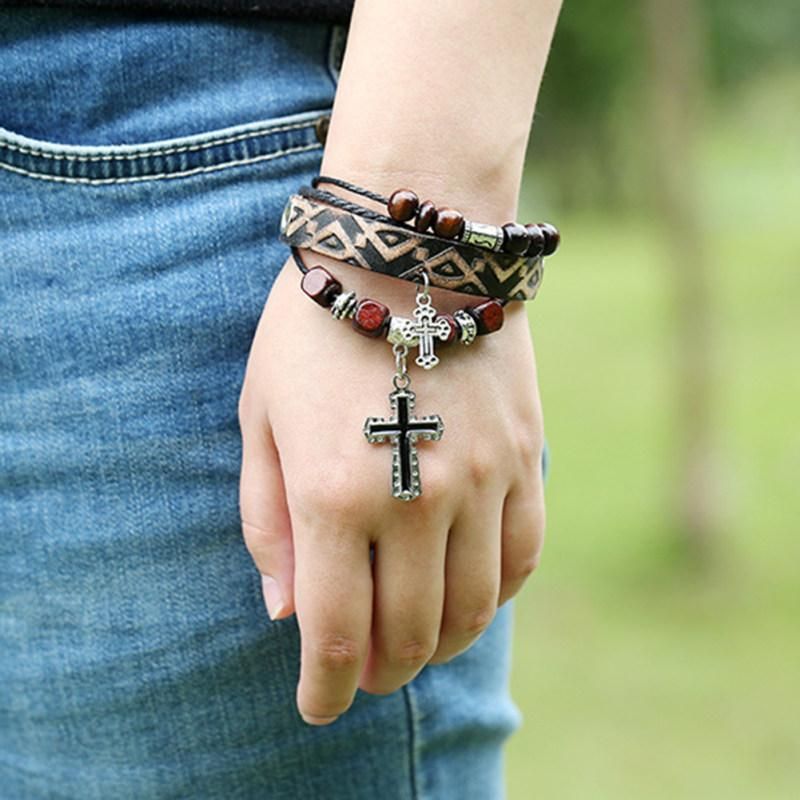 Material: Wood Beads, Faux Leather, Alloy