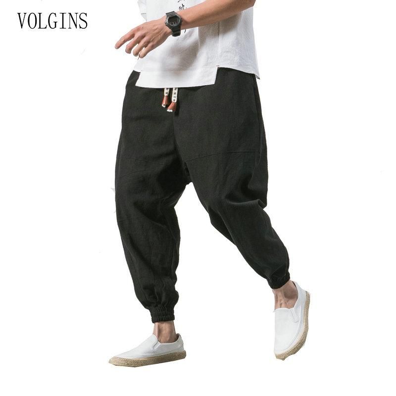 Pantalones de chandal Vintage para hombre ropa de calle de lino y algodon solido holgados bombachos Dropshipping novedad de 2021