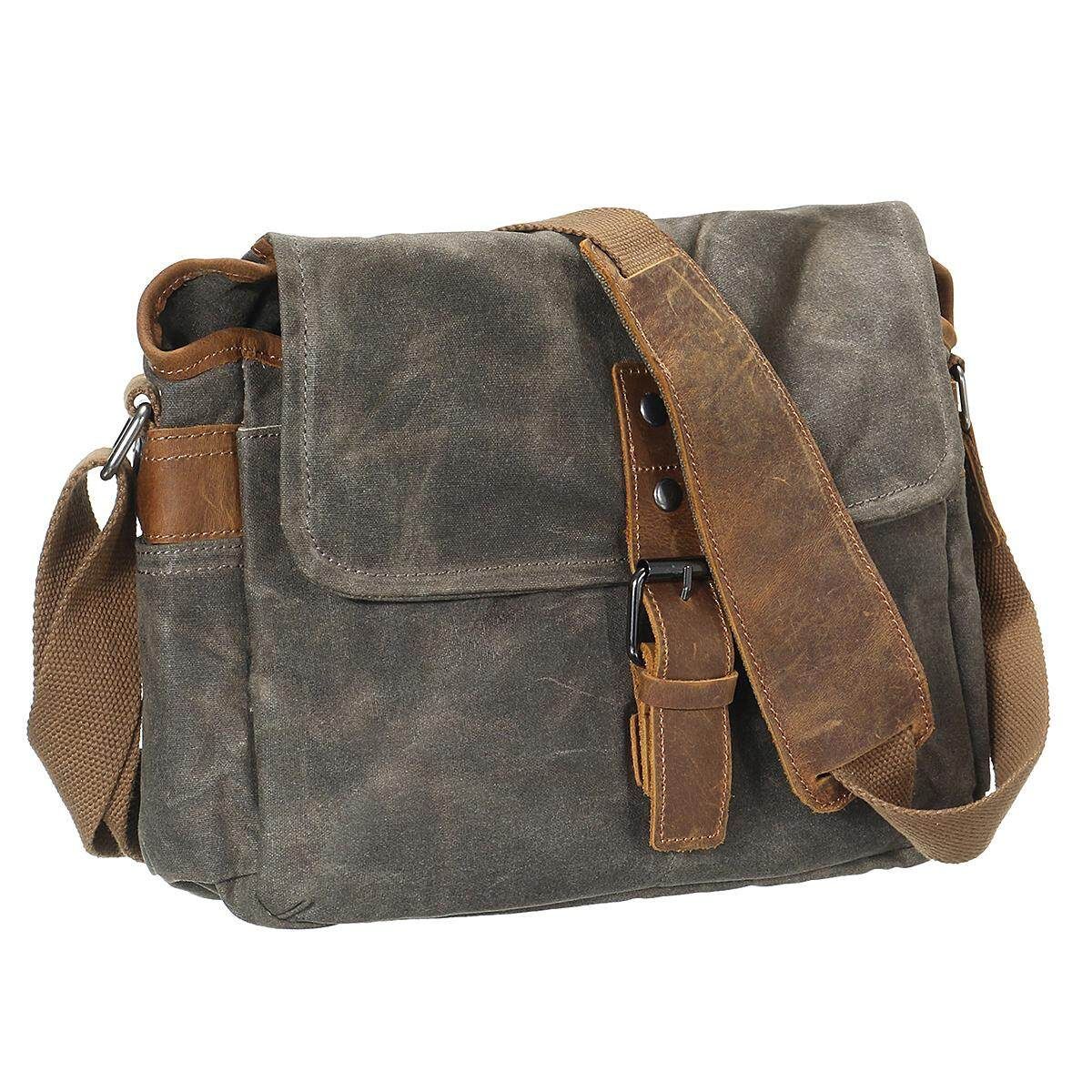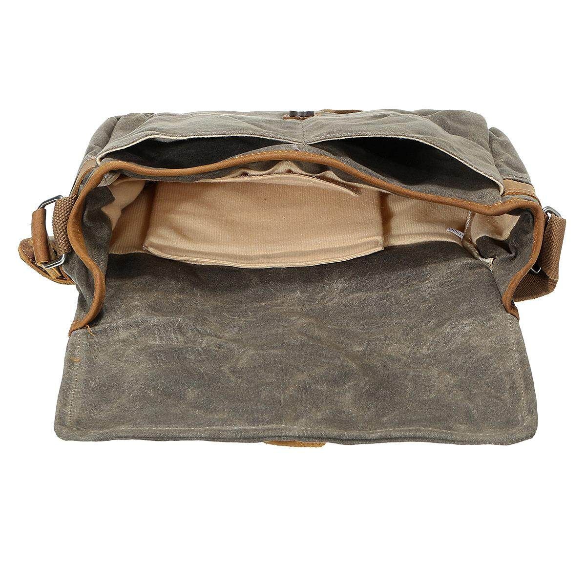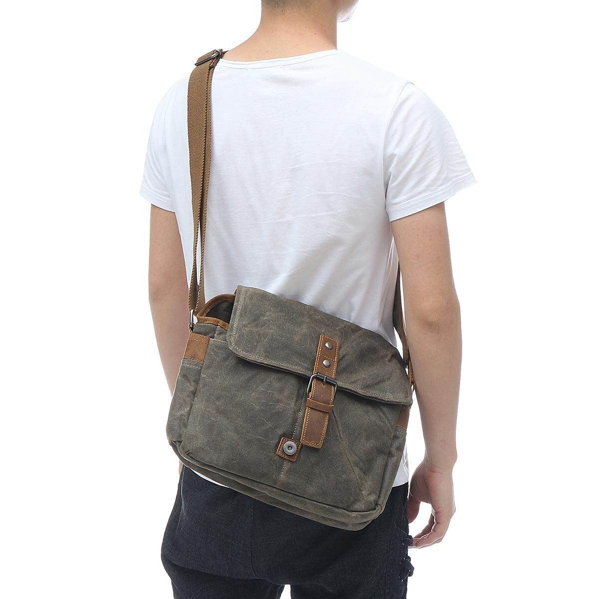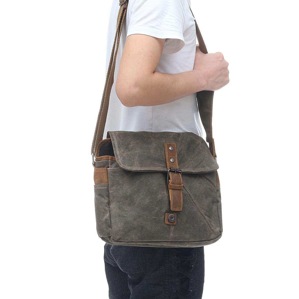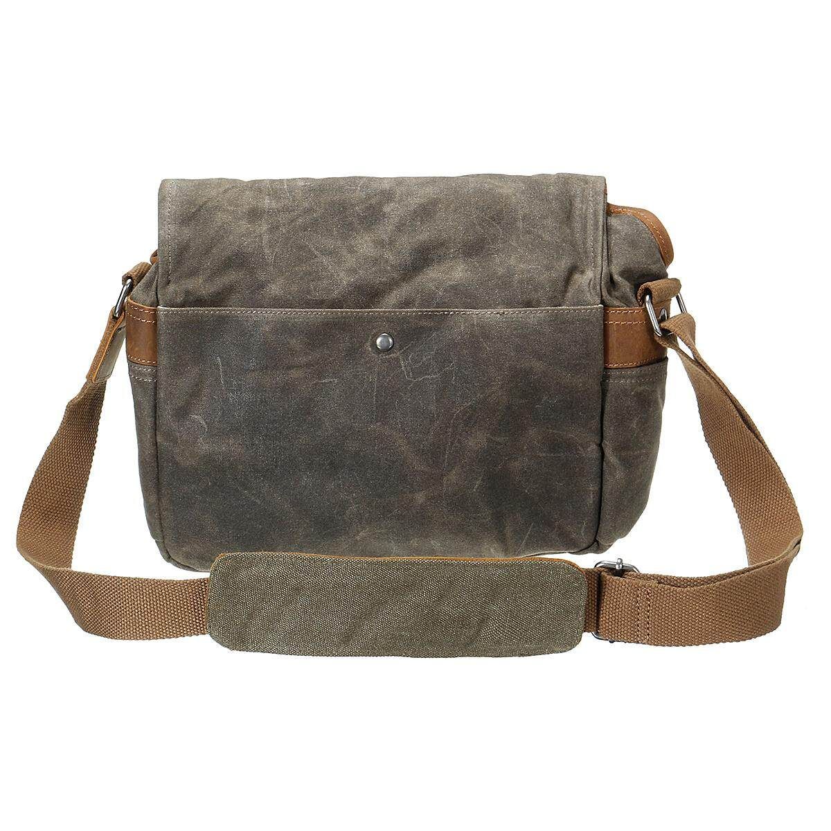 Vintage Waterproof Canvas Leather Trim DSLR SLR Shockproof Camera Messenger Bag Description: Type:Camera Bag :Dark Gray/Coffee/ Green Material: High Density Waterproof Canvas with PU Leather Trim Dimensions: approx.30x10x20cm/11.82x3.94x7.88" (1cm=10mm=0.39inch) Package included: 1* Empty Camera Bag (Not included the camera and otheraccessories.) Feature: High Density Waterproof Canvas with PU Leather Trim, strong stitching, durable zipper, quick snap buckle. Durable and Cotton inner material insert for absorbing shock and vibration To protect your camera against damages, dust and scratches. Additional front pocket and back pocket designed for your cellphone, wallet, business cards,etc. Besides a dedicated camera case, it can also be a daily fashion messenger shoulder bag. This could be a perfect chic compact camera messenger bag. If you have a mirror-lessor a small DSLR camera looking to carry just the essentials without the bulk, this bag is for you. This stylish but sturdy bag is perfect for not lugging around your camera gear, but is the perfect multipurpose gear bag or to even serve as a satchel. Sometimes you just want to get out and without lugging around a backpack, this camera messenger is a great bag for those days you want to travel light. Notice: 1.The real of the item may be slightly different from the pictures on website caused by many factors such as brightness of your and light brightness. 2.Please allow slight deviation for the measurement data. 3.Please allow 1-3cm error. Ifyouhaveanyquestions,pleasecontactus. Wishyouhaveahappyshoppingtime!