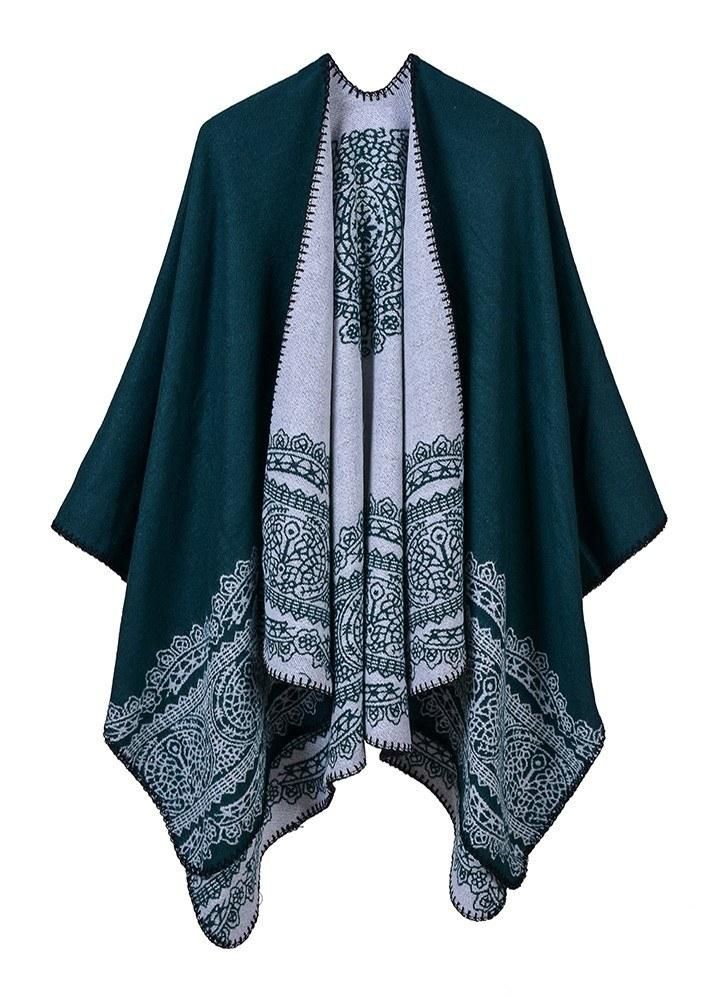 Buy Vintage Women Poncho Cardigan Sweater Lace Patten Faux Cashmere Capes Shawl Scarf Loose Outerwear in Nigeria