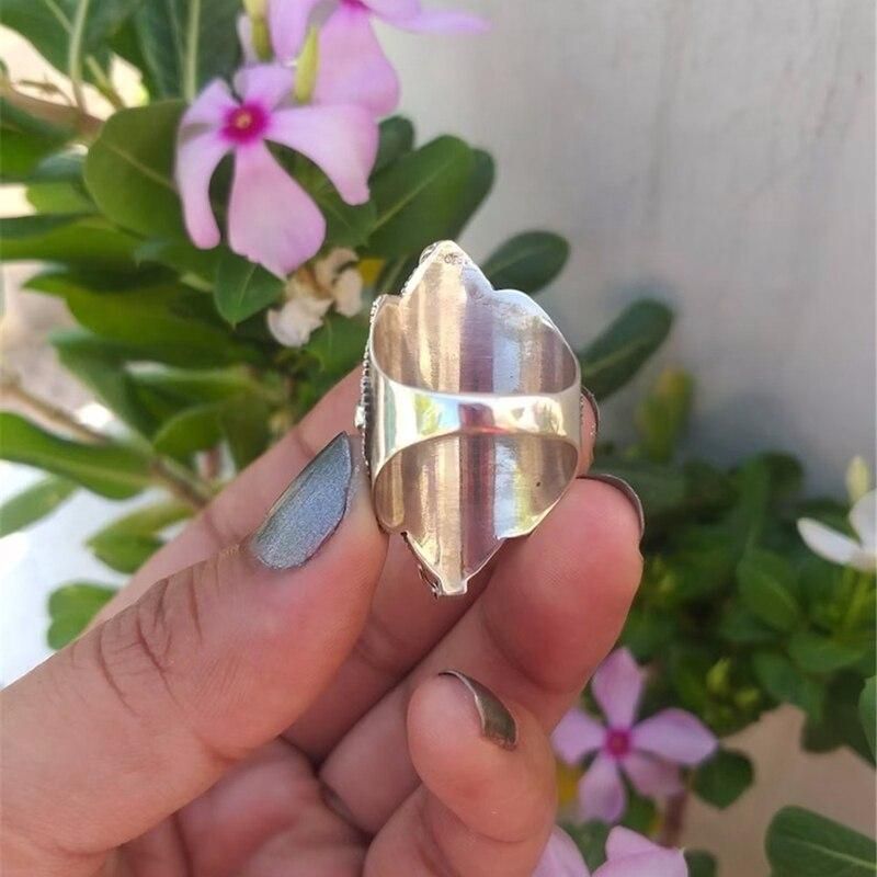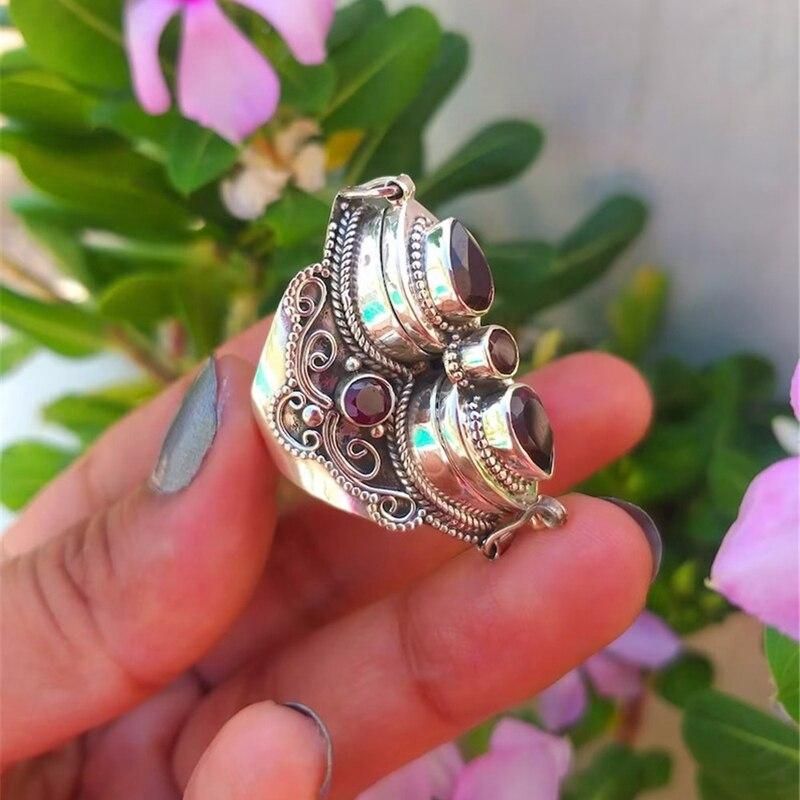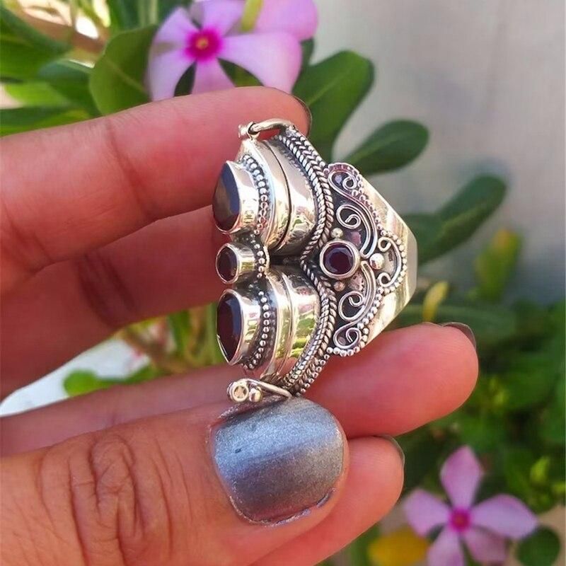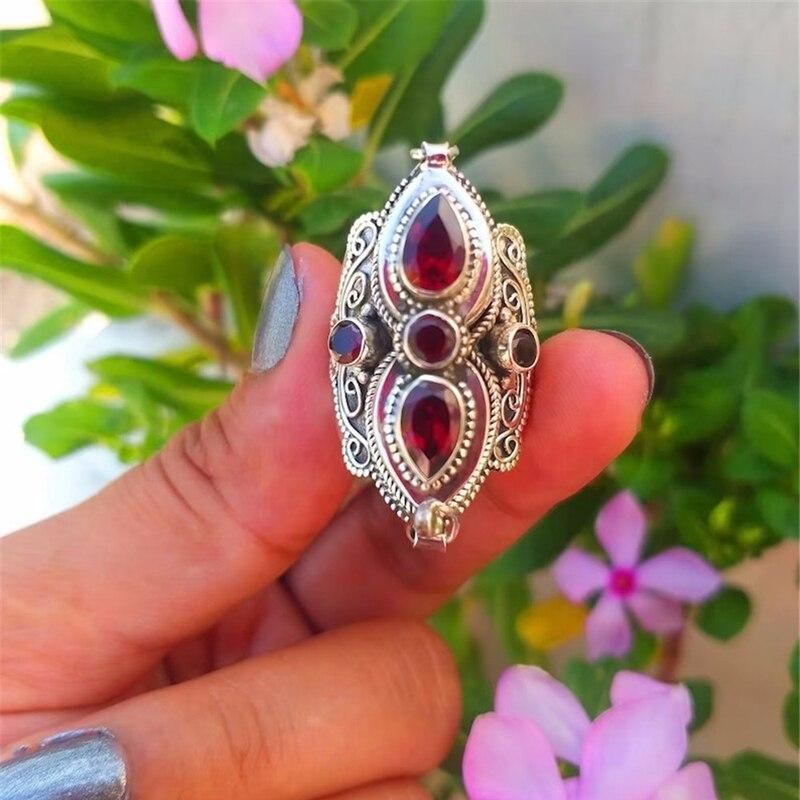 Buy Vintage Women's Ring Bohemian Exaggerated Ring Inlaid Red Cubic Zirconia Antique Silver Color Engraving Classic Ladies Jewelry in Nigeria