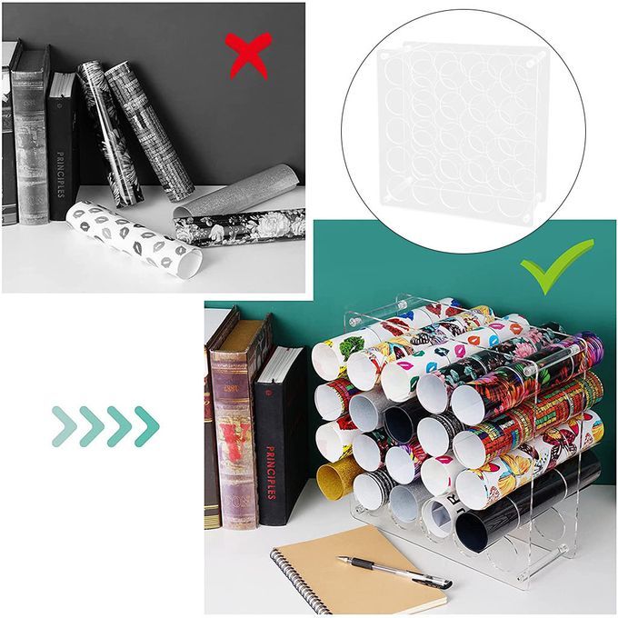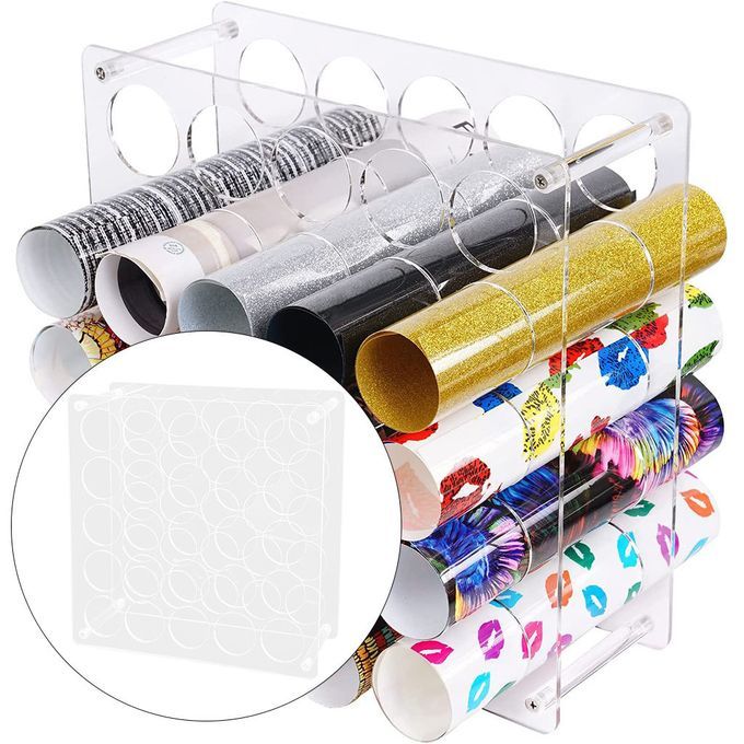 Vinyl Roll Storage Rack;25-Holes Vinyl Roll Storage Organizer Holder Rack;Vinyl Storage Rack for Craft Room Vinyl;Vinyl Storage Rack Balanced Detachable Organiser;Acrylic Material; Can Be Installed on The Wall;Installation Tool Craft Room Vinyl Sheets Rack