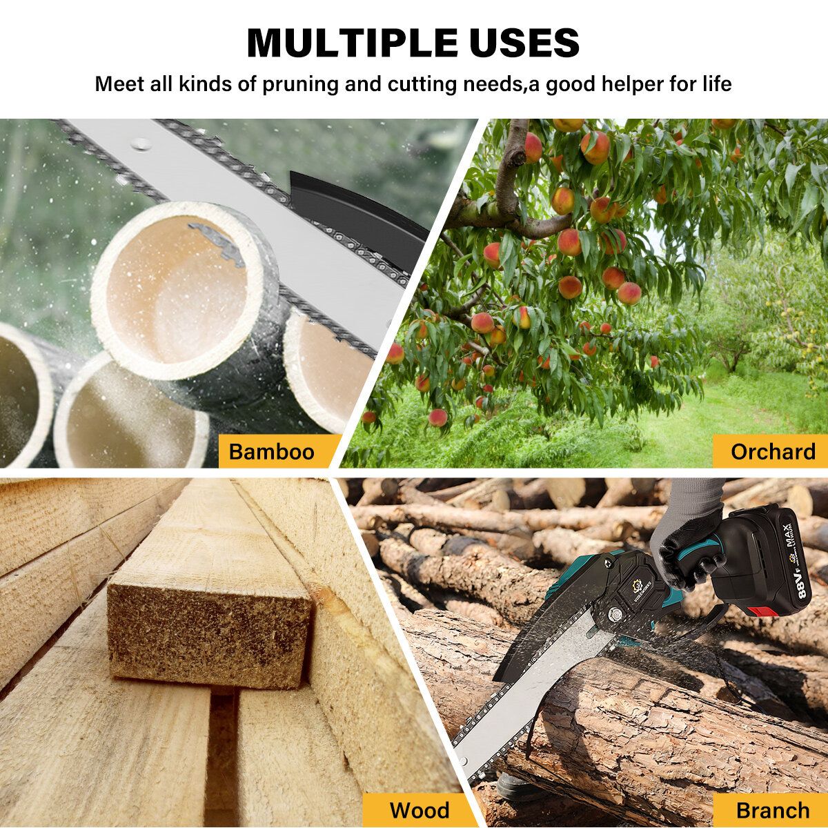 NOTE: Body Also Suitable For Makit 18V Battery!!!Specification:Brand: VIOLEWORKSMotor: Brushless MotorGuide Plate Length: 8 InchesChain Speed: 5M/SBattery: 2500mAhVoltage: 88VFPower: 1200W