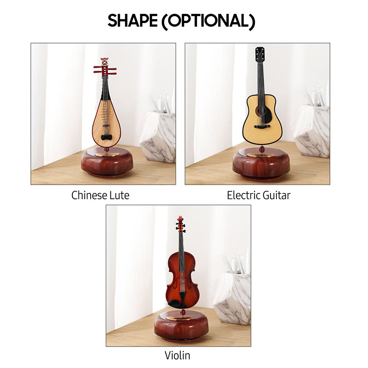 Features:Exquisite stringed musical instrument miniature music box.