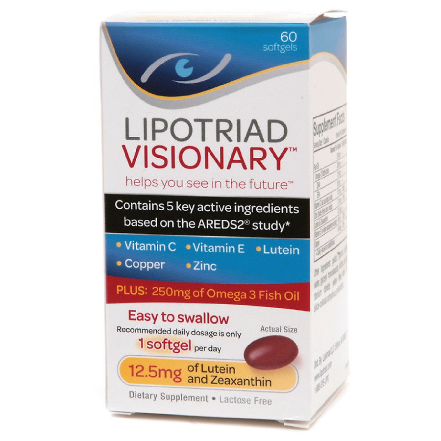Lipotriad Visionary is our Low Zinc formulation containing all 6 ingredients found in the AREDS2® study including a class leading 10mg of lutein & 2.5mg of Zeaxanthin. At only $24.99 for a 2 month supply the Visionary formula is known as a LOW COST, 1-PER-DAY, DYE FREE option for adults over 50 concerned about their eye health. Visionary is easy to digest due to low zinc and also free of Beta-Carotene and therefore safe for both smokers and non smokers. Lipotriad Visionary was released on the market April 15, 2012, and was upgraded to an all natural (Dye Free) formula on August 1, 2013.