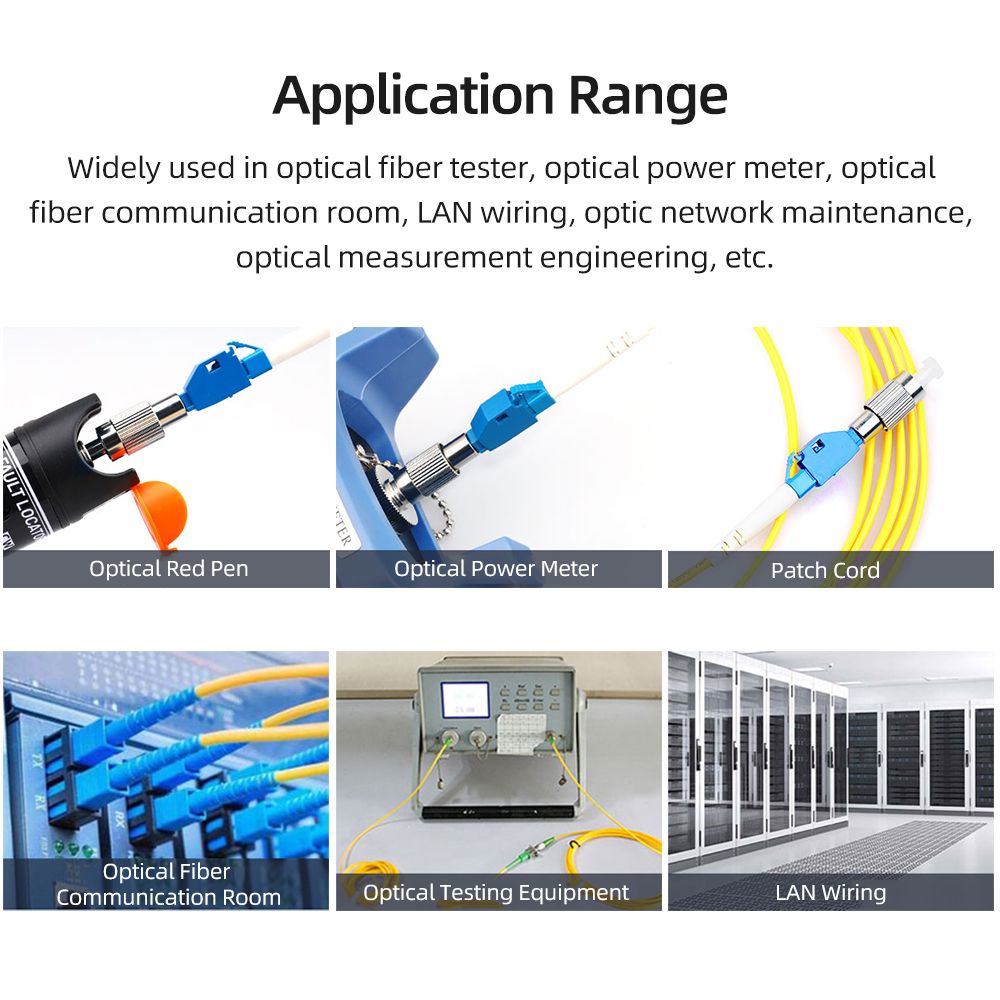 Widely used in optical fiber tester, optical power meter, optical fiber communication room, LAN wiring, optic network maintenance, optical measurement engineering, etc.