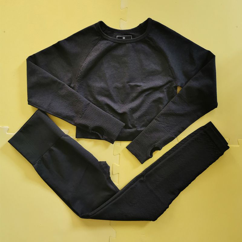 1 * Vital Seamless 2 Piece Yoga Set Workout Clothes Black_S