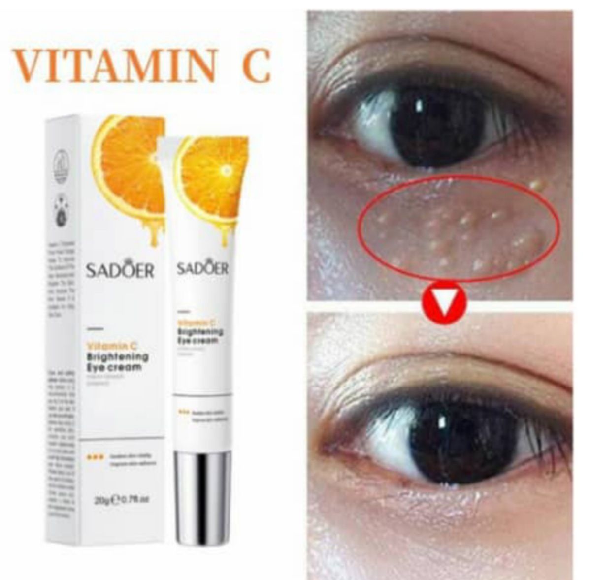 SADOER Vitamin C Brightening Eye Cream can help to moisture the skin around the eyes, give and lock moisture for skin, to make eyes more shiny and charming. It can effectively replenish moisture, diminish fine lines and slow down the aging of the skin around the eyes. Can effectively improve eye bags.