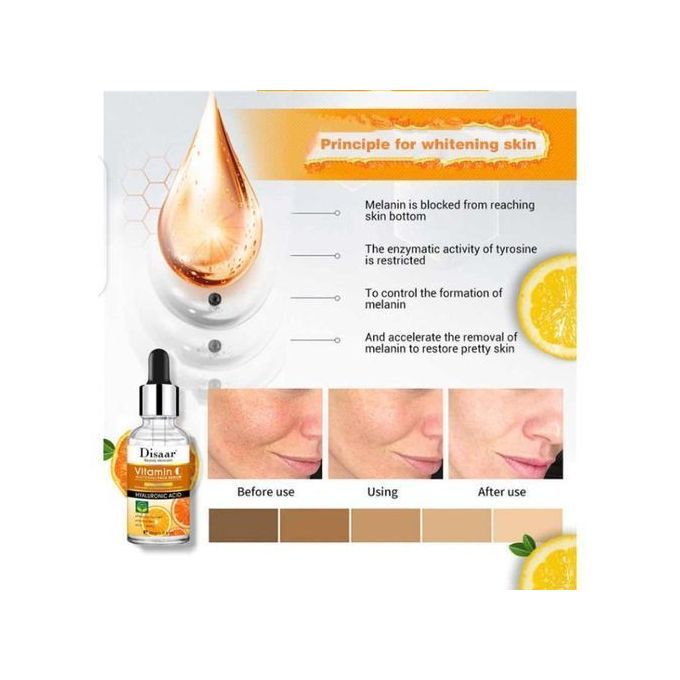 Vitamin C Skin Serum has a powerful anti-aging formula that fades and eliminates dark spots, freckles, sunburns, and wrinkles. Vitamin C can be fully absorbed by the body and it naturally protects the skin from harsh sun, helps the skin to restore whiteness, stimulates collagen production, prevents the skin from sagging, and improves skin self-repair. You can also mix our Vitamin C body oil with other skin care products including creams, lotions and toners for double moisturizing effects.