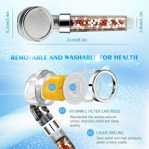 3 types of natural filter balls and a vitamin C cartridge effectively remove chlorine and chloramine, leaving skin, scalp and hair soft and smooth. The soothing citrus scent invigorates the senses and can reduce stress, improve mood and even improve sleep quality.