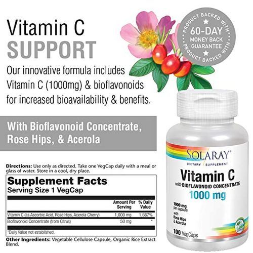 Contains Vitamin C from two different sources (Rosehips and Ascorbate) to optimize health and beauty benefits.