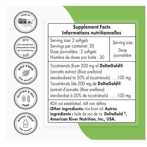 CONTAIN: DeltaGold, Annato extract (Bixa orellana) standardized to 50% tocotrienols - Other ingredients: rice bran oil