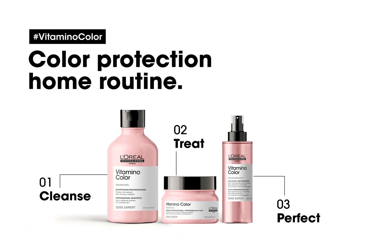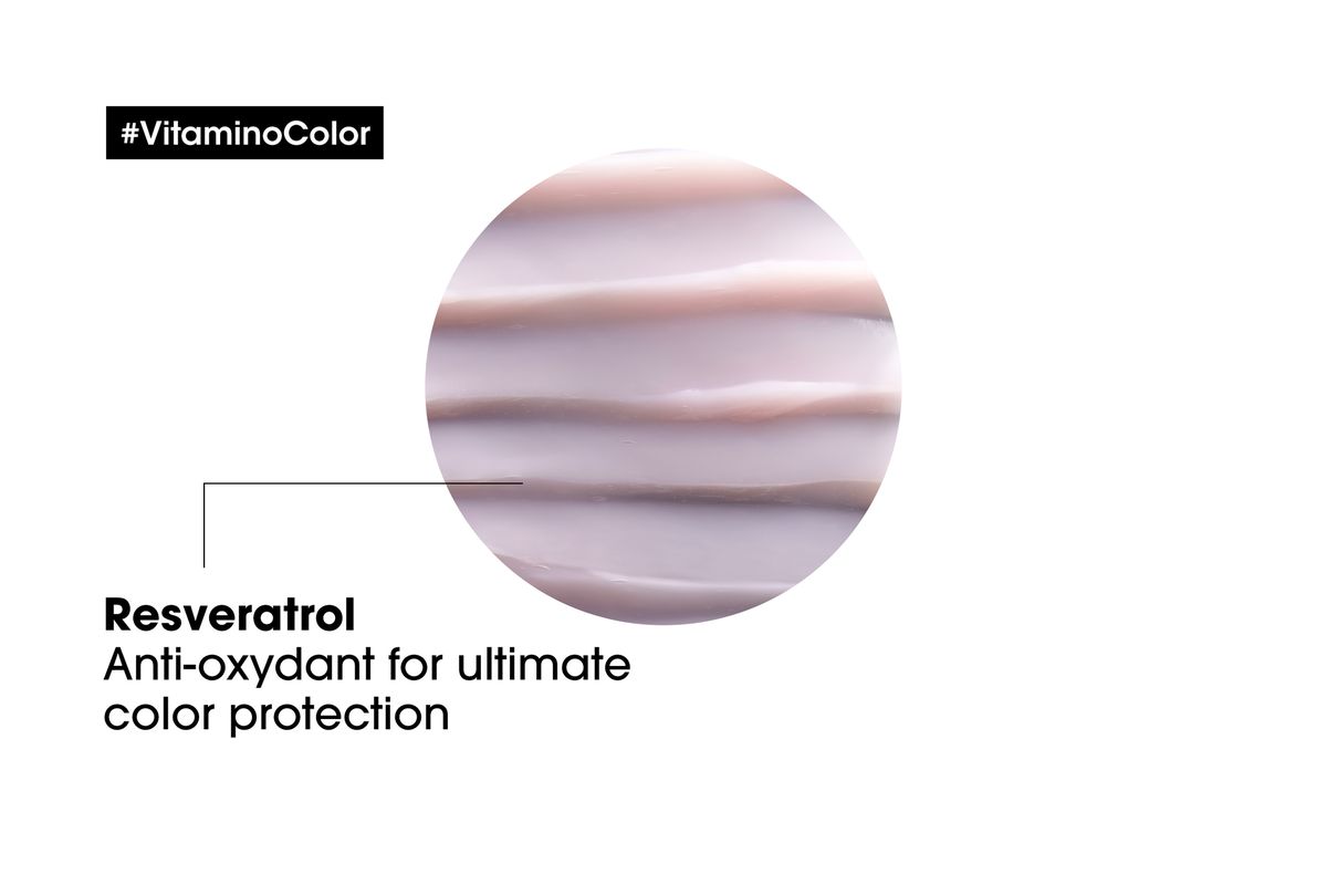 - Enriched with Resveratrol, L'Oreal Professionnel Vitamino Color Mask intensely nourishes color-treated hair making your color last longer.
