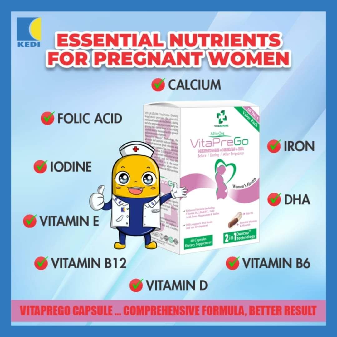 Before pregnancy, Vitanature VitaPreGo Dietary Supplement prepares the woman's body and adjusts the body in readiness for pregnancy. During the first to third month of pregnancy (first trimester), one capsule daily will take care of the nutritional gaps and help relieve pregnancy symptoms. During the fourth to sixth month of pregnancy (second trimester), one capsule daily provides mothers with the essential nutrients needed to make the baby grow optimally. During the seventh to ninth month of pregnancy (third trimester), one capsule daily prepares the mother for childbirth. After the birth of the child, the new mother needs certain nutrition during the breastfeeding stage. One capsule daily helps to meet this need.