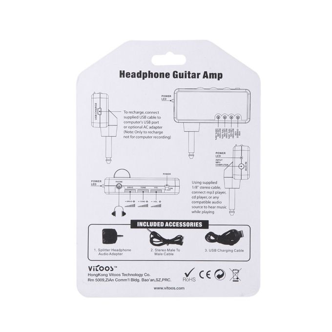 1 x Guitar Plug Headphone Amp,1 x Cable,1 x USB Cable,1 x Splitter Plug
