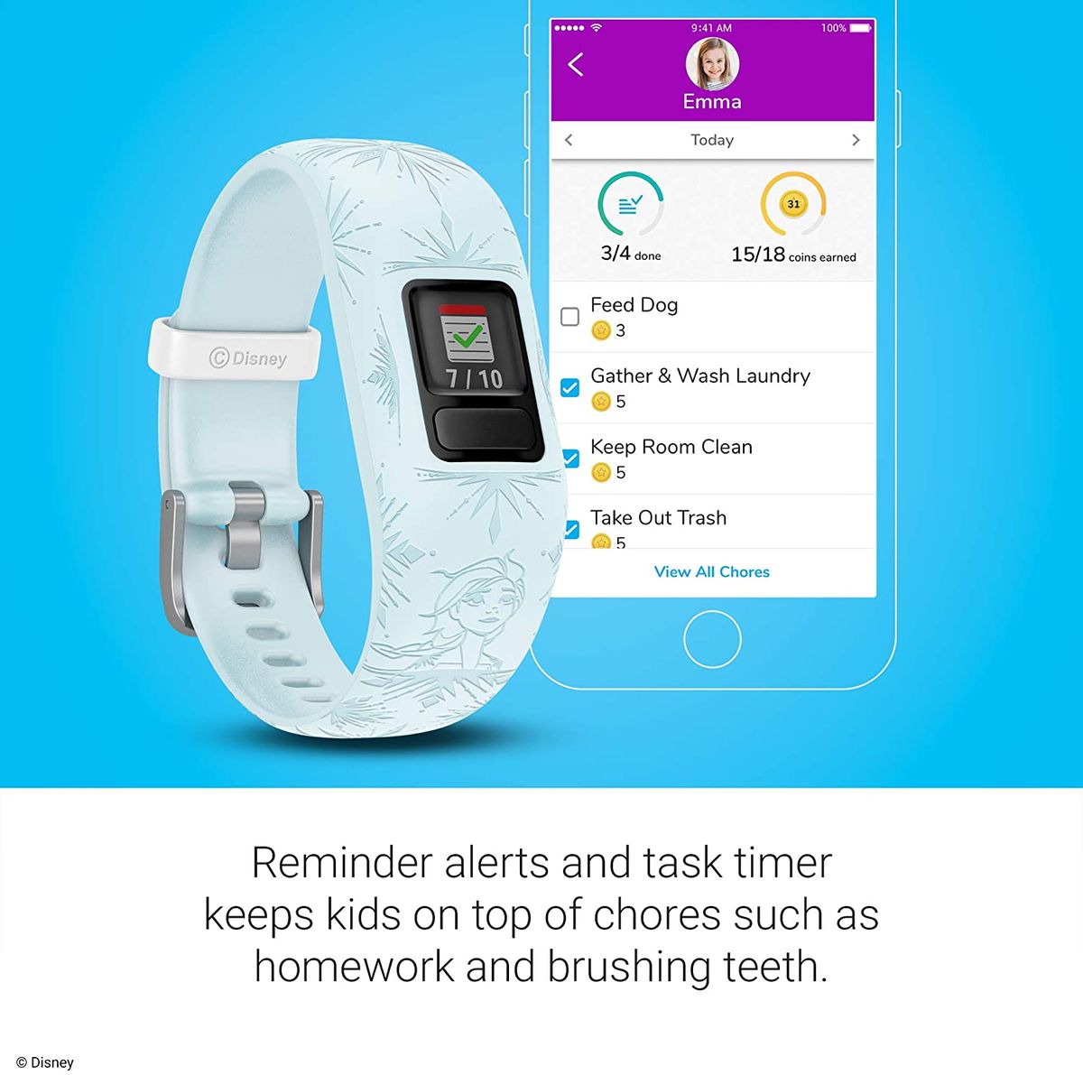 Into the Unknown — A Frozen 2 AdventureEvery day, kids have more to explore when they reach their daily 60-minute activity goals. With you as their helper, your child will go ice skating with Anna and Elsa, escape an avalanche with Olaf and travel to far-off frozen lands to locate the source of a mysterious voice. The more your child meets their activity goals, the more of the story they'll get to see. | Interact with a Magical WorldMeeting their daily activity goals gives kids more chances to race against the clock while playing the tap challenge game. They'll also collect gems they can use to reveal new portions of the adventure map. | The Parental Personal AssistantThe mobile app isn't just for the kids to enjoy. Parents can view activity, responsibilities, sleep, chore data and more after syncing with compatible devices. Invite the whole family to compete in a daily step challenge, assign tasks and chores, designate a reward virtual coin value and find out how many coins each child has. Those in-app coins can be redeemed by your kiddos for agreed-upon rewards. It's all controlled right from your device. |