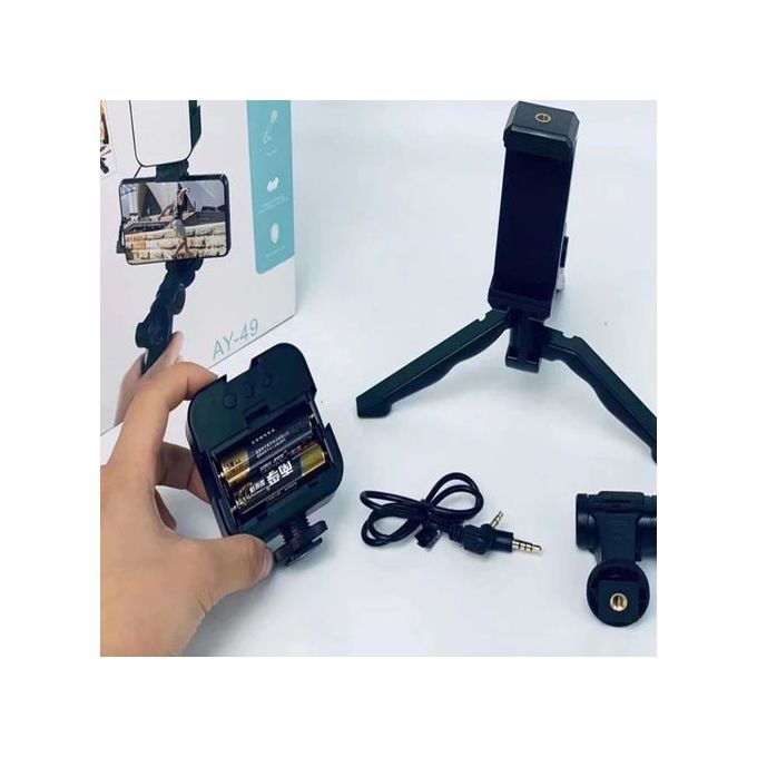 6500K LED Light: 49pcs lamp bead provides the light 6500K color temperature and 5W output , powered with 2pcs AA batteries (not included), for brighter and uniform video lighting.