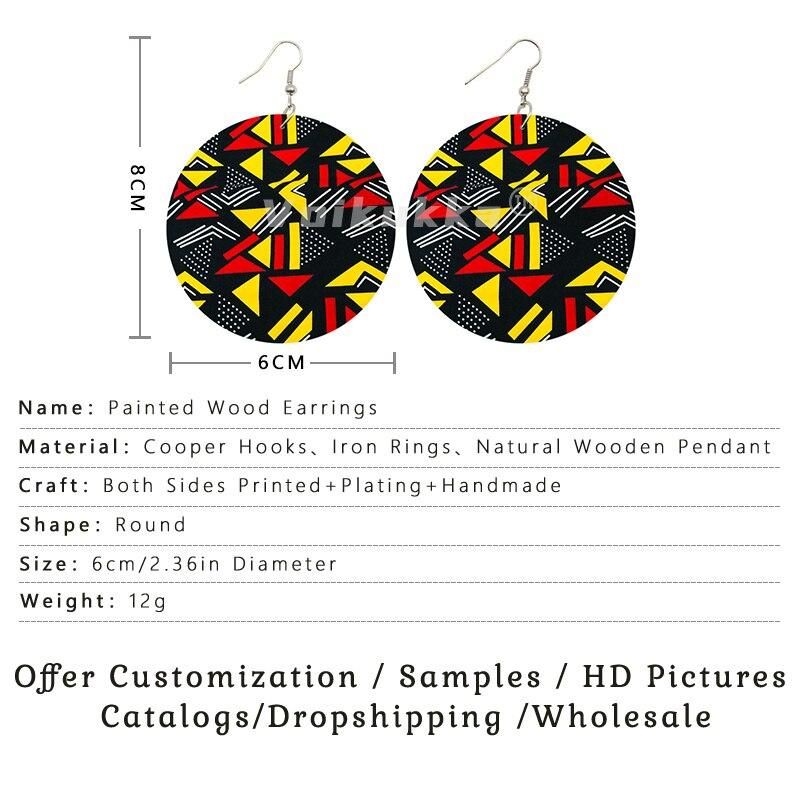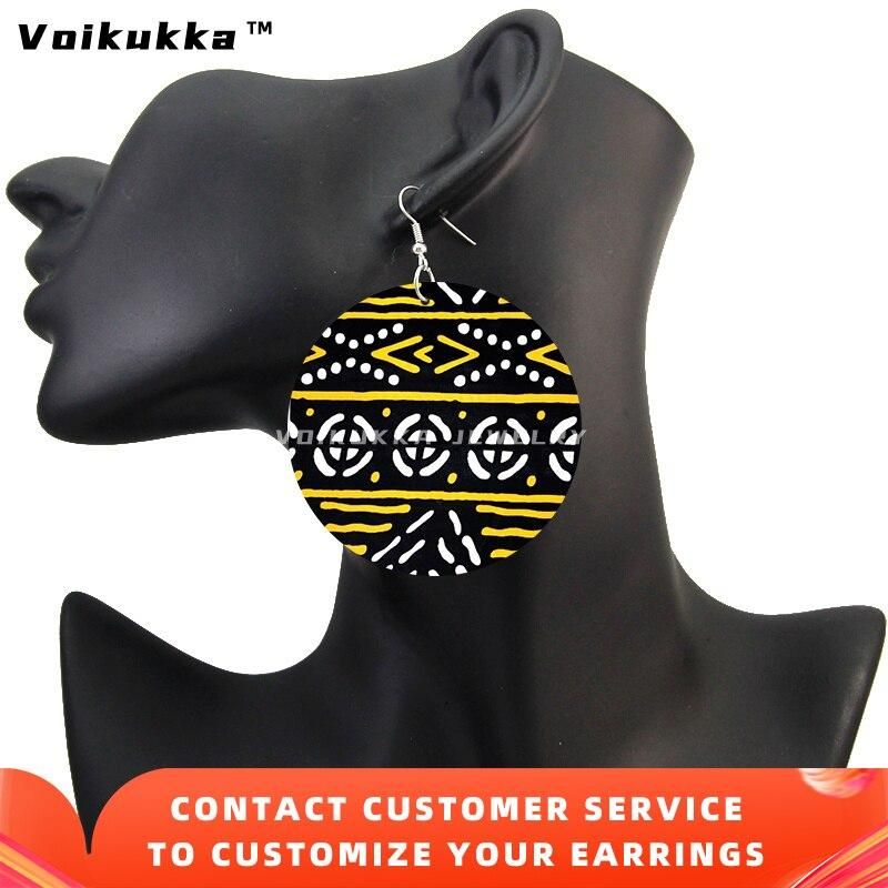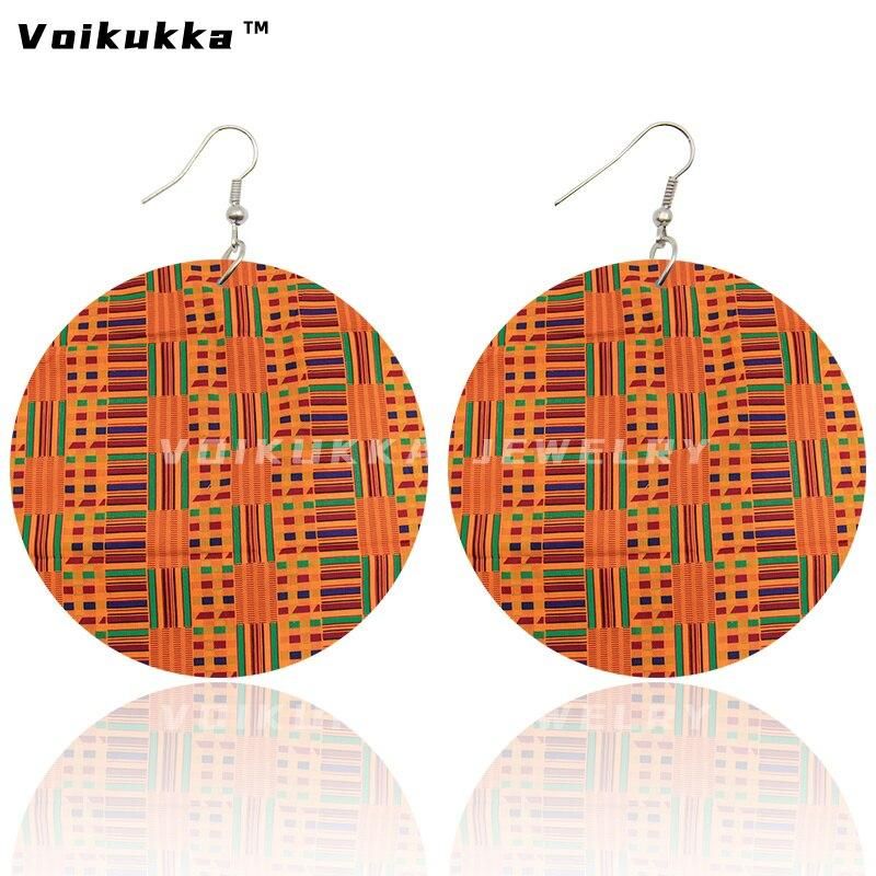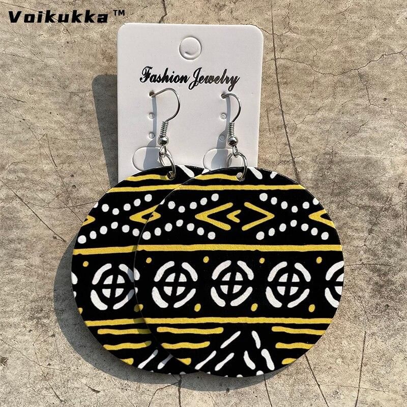 Buy Voikukka Jewelry African Ethnic Fabric Pattern Leaf Wood Double Sides Print Round Drop Dangle Women Earrings Accessories in Nigeria