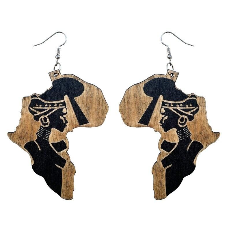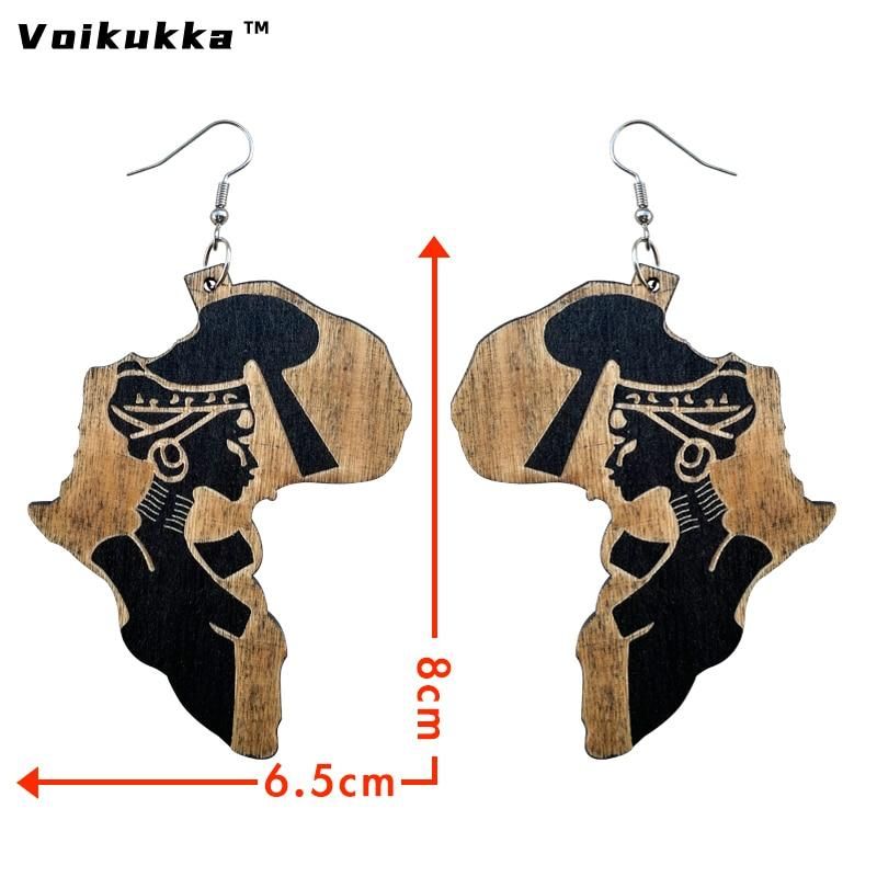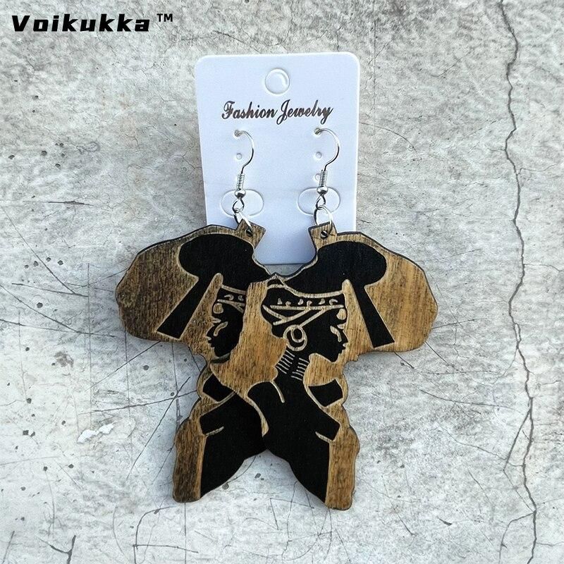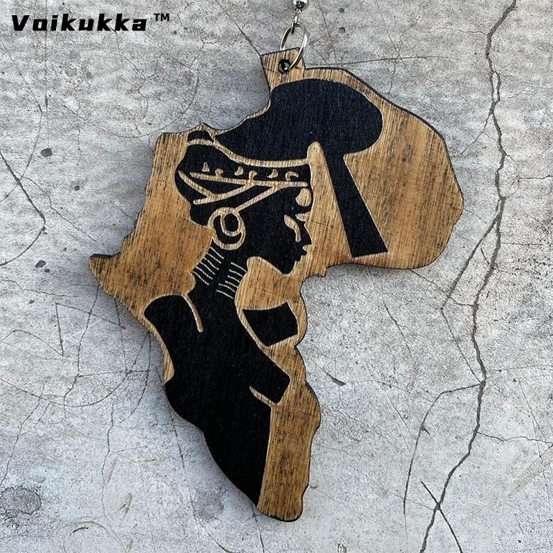 Buy VOIKUKKA Jewelry Laser Cutting Africa Shaped Wood Drop Earrings With Carved African Woman Ethnic Accessories For Gift Wholesale in Nigeria