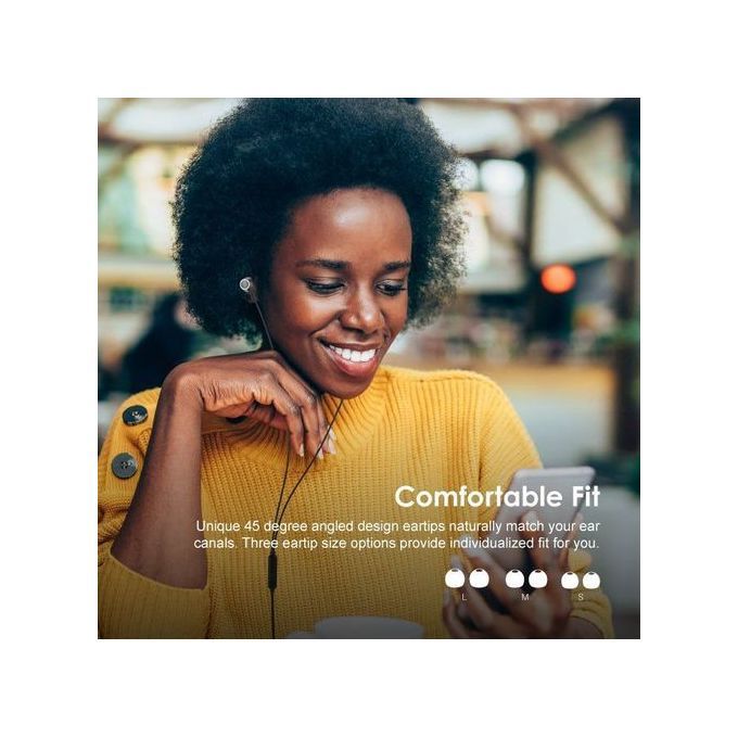 Unique 45 degrees angled design ear tips naturally match your ear canals. Three eartip size options provide an individualized fit for you.